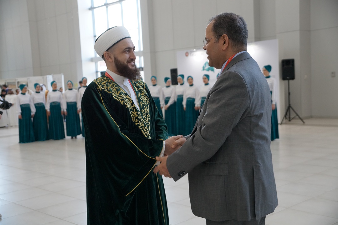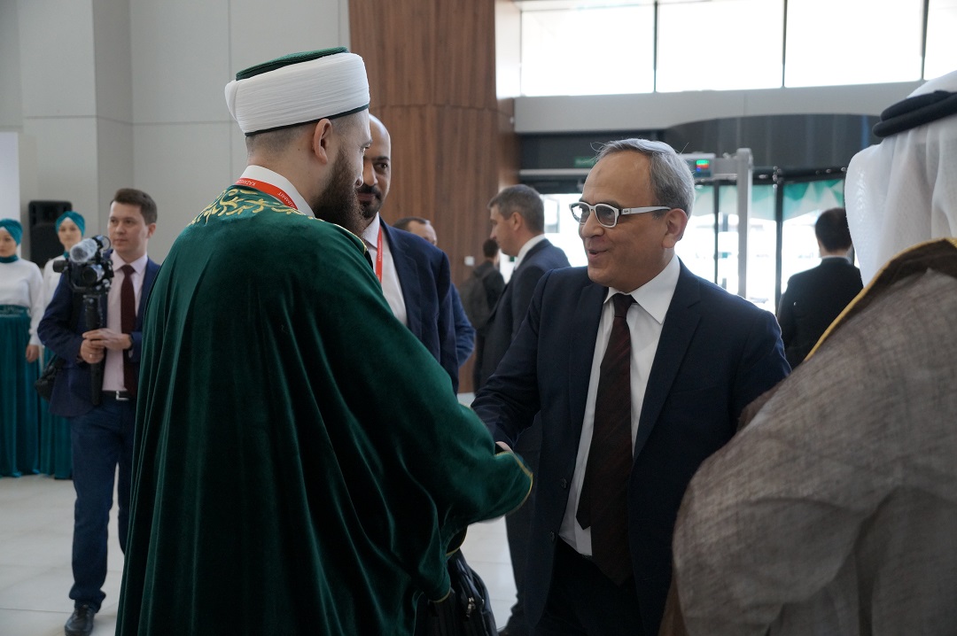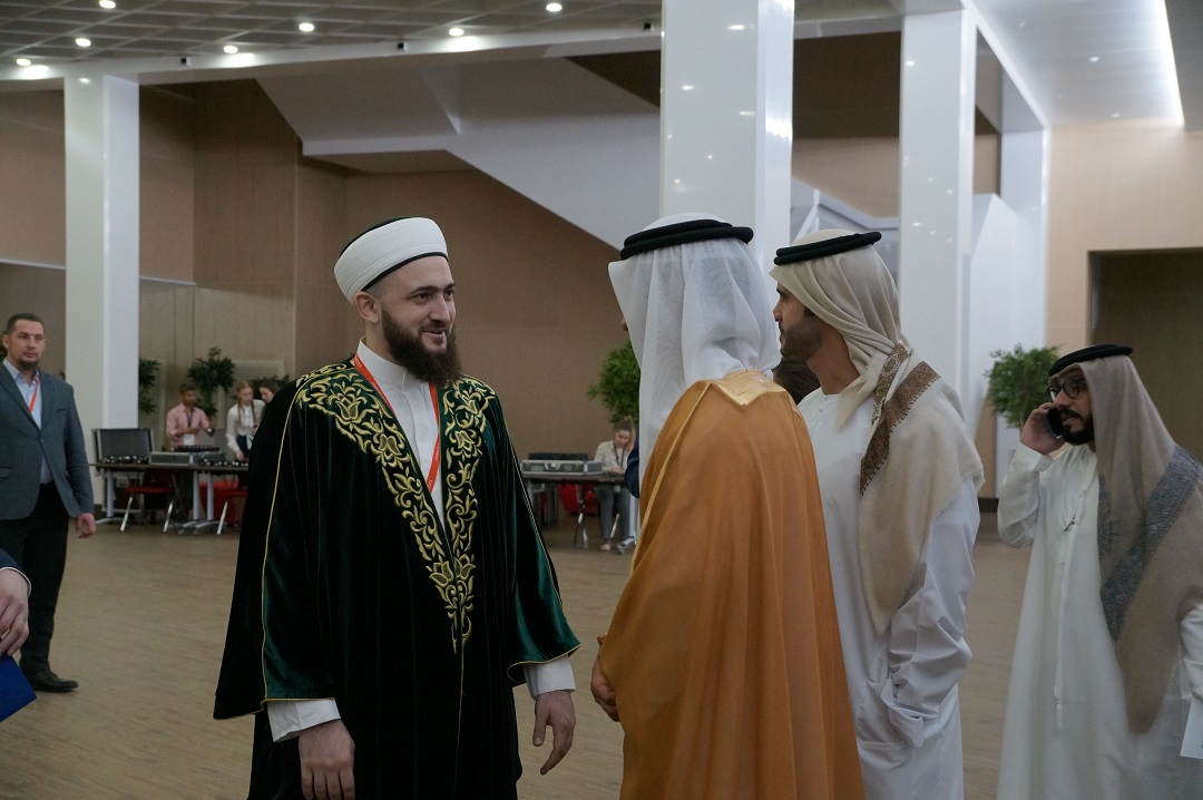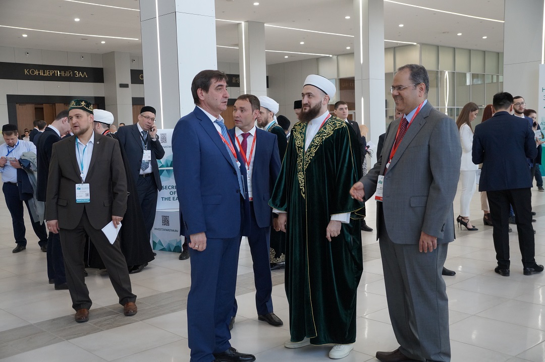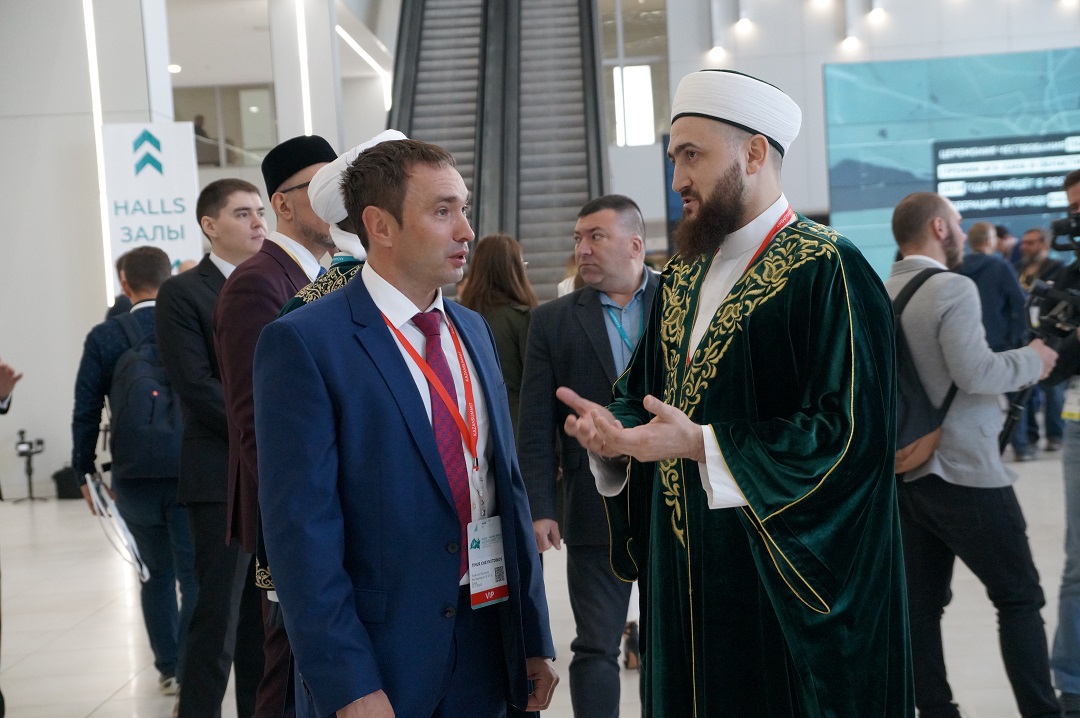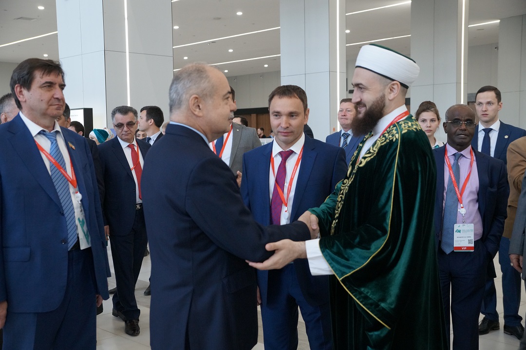 Күргәзмәгә керешкә Рөстәм Нургалиевичны саммитның күпләгән кунаклары һәм катнашучылары белән бергә Татарстан мөселманнары башлыгы Камил хәзрәт Сәмигуллин һәм ТР инвестицион үсеш агентлыгы җитәкчесе Талия Миңнуллина каршылады. Мөфти хәзрәтләре республика Президентын сәламләп аңа кыскача күргәзмә, аның экспонентлары һәм күрсәтелгән хәләл сәнәгате өлкәләләре турында сөйләде. Елдан-ел күбрәк танылып барган RUSSIA HALAL EXPO Халыкара күргәзмәсе быел Россиядә һәм аның хәләл үсеше тарихында иң зурлардан санала. 2018 елда күргәзмәнең экспозициясе 1,4 мең кв. м. мәйданны биләгән булса, быел ул 3,5 мәртәбәгә киңәеп, 5 мең кв.м. тәшкил итә. Күргәзмә азык-төлек һәм туклану, косметика һәм химик сәнәгать, мода һәм матурлык индустриясе, туризм һәм кунакчыллык, күпләп һәм ваклап сату, финанслар һәм инвестицияләр, киң кулланыштагы товарлар секторлары компанияләрен үз эченә берләштереп, икътисадның барлык өлкәләрен диярлек колачлый. Барлыгы 84 экспонент. Күргәзмәне оештыручылар - ТР Инвестицион үсеш агентлыгы, "Хәләл" стандартлары Комитеты, ТР Мөселманнарының Диния нәзарәте.