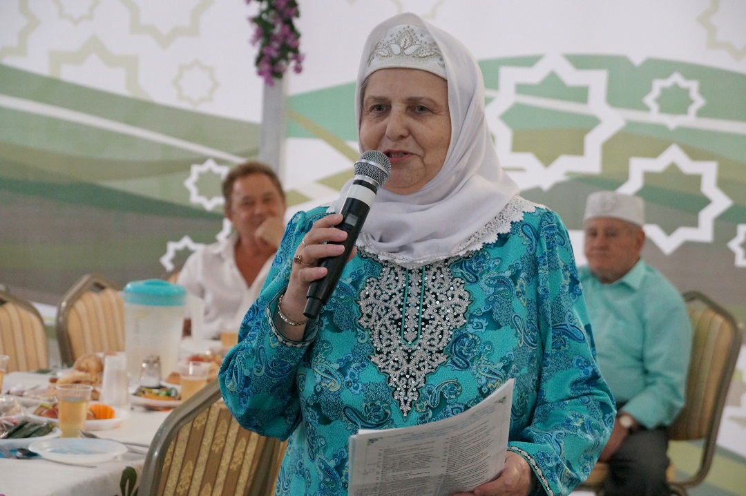 Авыз ачу алдыннан сәламләү сүзләре белән кунакларга мөфтиятнең хатын-кызлар белән эшләү бүлеге җитәкчесе, Россия һәм Татарстан мөслимәләре рәисе Наилә ханым Җиһаншина мөрәҗәгать итте. Үзенең чыгышында ул бу төр өчрашуларның мөселман өммәтен берләштерү, үзара тәҗрибә уртаклашу, фикер алышу өчен гаять мөһим булуын билгеләп үтте. Моннан тыш, ул күп еллар дәвамында өммәтне үстерүгә зур өлеш кертүче битараф булмаган актив мөслимәләргә ихлас рәхмәтен белдерде.