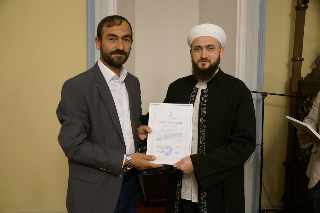 Имам-хатыйб, мөгаллим, мөәдзин белгечлегенә ия хафизлар быел Апас, Саба, Балтач, Кукмара, Лаеш, Буа, Әлмәт, Чирмешән, Яшел үзән районнарында бер ай дәвамында тәравих намазларында Коръән хәтем кылды. Шунысын билгеләп үтәргә кирәк, Рамазан аенда Коръән уку һәм аны хәтем кылу сөннәт гамәл булып санала, чөнки Кәлам Шәриф шушы айда иңдерелгән. Очрашу барышында мөфти хәзрәт Татарстанда тәравих намазларында тулысынча Коръән укылу турында мәгълүмат бирде, моннан тыш Коръәнне ятлау буенча тәҗрибәсе турында сөйләде.