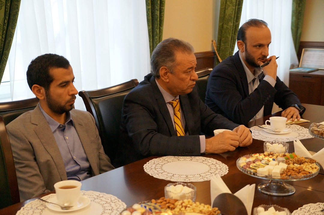 Бүген, Зөлкагдә аеның 6 нчы көнендә, Татарстан мөселманнары Диния нәзарәте резиденциясендә мөфти Камил хәзрәт Сәмигуллин Бөтендөнья мөселман җәмгыятьләре советы (Берләшкән Гарәп Әмирлекләре) рәисе урынбасары Наср Мөхәммәд Ареф җитәкчелегендәге делегация белән очрашты. Очрашу Болгар ислам академиясе ректор Данияр Абдрахманов һәм академиянең фәнни эшчәнлек буенча проректоры Рамил Әдһәмов катнашында узды. Әңгәмә барышында академиядә уку процессын оештыруда хезмәттәшлекне җайга салу, аерым алганда, студентлар өчен уку программаларын әзерләүдә ярдәм күрсәтү мәсьәләләре күтәрелде, шулай ук Берләшкән Гарәп Әмирлекләренең төрле оешмалары, аерым алганда университетлар белән хезмәттәшлек итү турында сүз алып барылды. Бу өлкәләрдә кунаклар тарафыннан укыту-методик ярдәм күрсәтергә әзер булуын белдерделәр. Моннан тыш, Бөтендөнья мөселман җәмгыятьләренең Советы Ислам мәдәниятенә, фәненә һәм мәгарифенә ярдәм итү фонды (Мәскәү ш.) белән килешү төзегәнлеге ассызыклап үтелде.