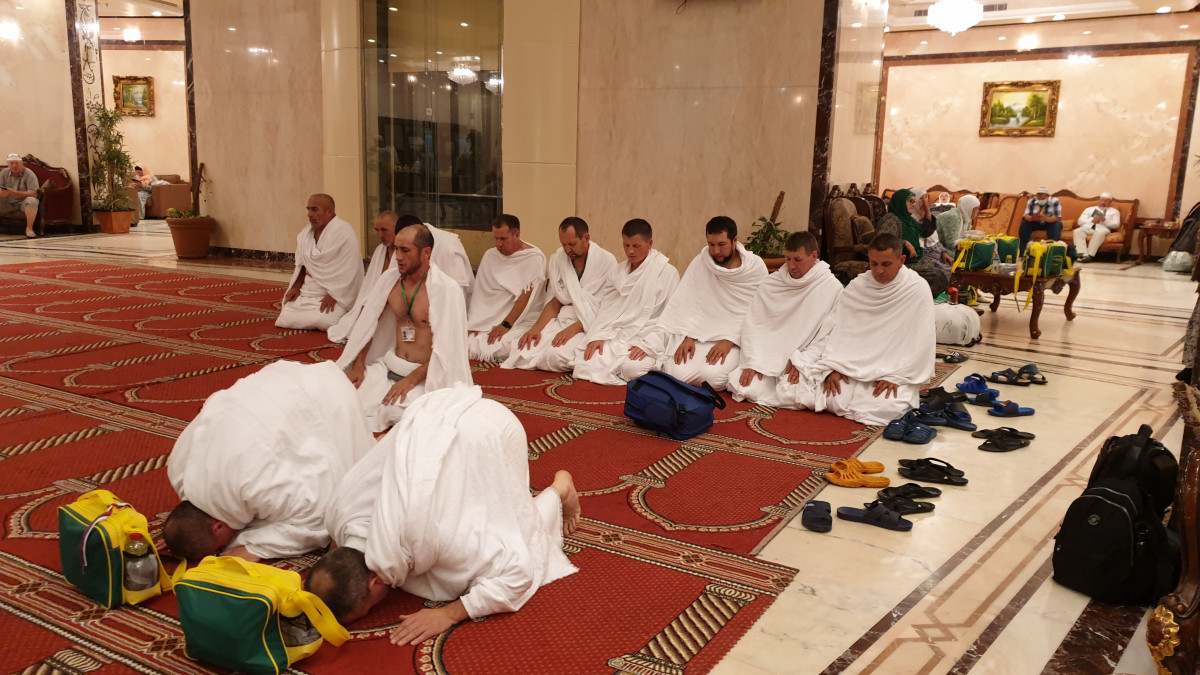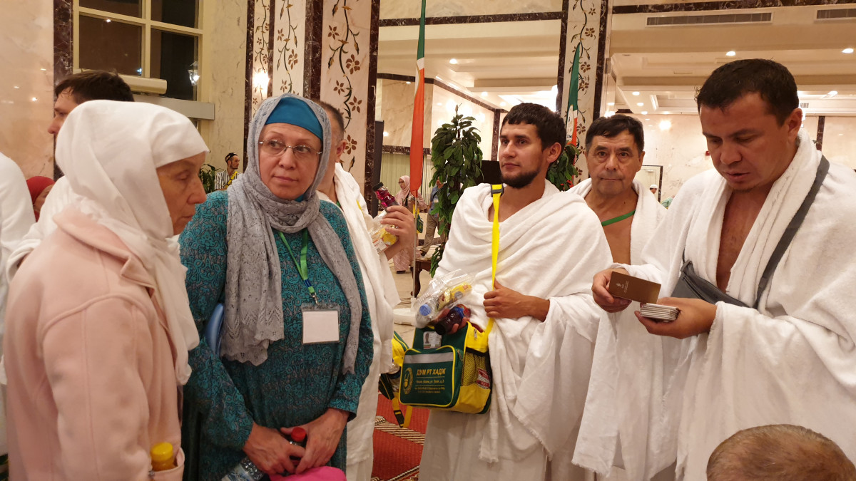 Килеп җитү белән, аэропортта дин кардәшләребезне Татарстандагы “ДУМ РТ Хаҗ” рәсми хаҗ операторы вәкилләре каршы алды, уңайлы кунакханә номерларына урнаштырып, кичке ашка озатты. Төркем җитәкчеләре Марат хәзрәт Мәрданшин һәм Исмәгыйль хәзрәт Сингатуллин булачак хаҗиларны биредәге әдәп-әхлак кагыйдәләре, тәртипләр белән таныштырды, ихрам халәтендә булган чактагы тыюларны янә бер кат искә төшереп уздылар. Ике төркем хаҗиларга биредә кайнар ризык, соклар, ашамлыклар бирелде һәм алар төнлә  гомрә кылырга Әл-Хәрәм мәчетенә юл тоттылар. Биредә тәҗрибәле төркем җитәкчеләре белән булачак хаҗиларыбыз Кәгъбәтуллаһ тирәли сәгать теленә каршы юнәлештә 7 тапкыр әйләнеп тәваф кылдылар, аннары 2 рәкәгать намаз укыдылар, зәм-зәм суы эчтеләр, Сафа һәм Мәрва таулары арасын догалар кылып, шулай ук җиде әйләнеш ясадылар. Алга таба чәчләрен кыркып ихрам халәтеннән чыктылар һәм кунакхагә кайттылар.