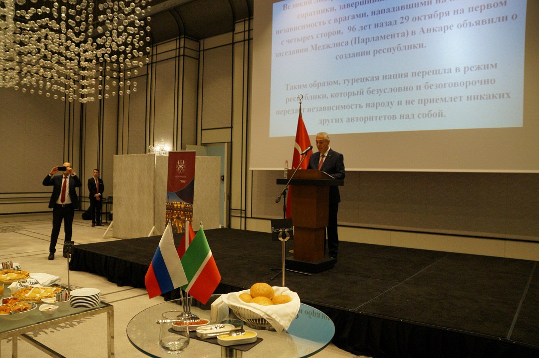 Кичә, рабигыль-әүвәл аеның 1-нче көнендә, Татарстан Республикасы мөфтие Камил хәзрәт Сәмигуллин Төркиянең Казандагы генераль консулы Исмәт Эрикан катнашында Төркия Республикасының 96 еллыгы уңаеннан оештырылган рәсми кабул итү чарасында катнашты. Кунаклар арасында сәясәтчеләр, җәмәгать эшлеклеләре һәм дин әһелләре, шулай ук эшмәкәрләр һәм массакүләм мәгълүмат чаралары вәкилләре бар иде. Генераль консул Исмәт бәй үзенең сәламләү чыгышында болай дип билгеләп үтте: «Без Төркия белән Россия арасындагы дуслык һәм барлык өлкәләрдә дә хезмәттәшлек дәвам итәчәгенә зур ышанычыбызны белдерәбез. Татарстан Республикасы белән тыгыз элемтәләребез Россия Федерациясе белән мөнәсәбәтләрне ныгытуын ассызыклап үтәсем килә».