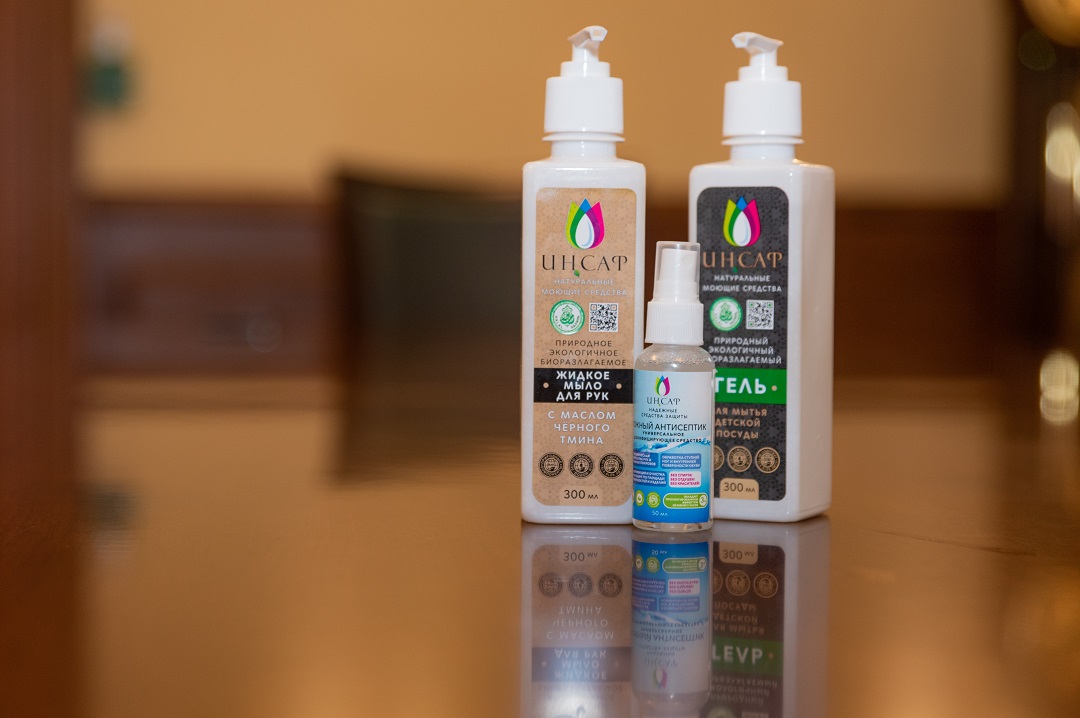 Компания директоры Йосыф Җамалиев сүзләренә караганда, көнкүреш химиясен җитештерүдә Шәригать күзлегеннән рөхсәт ителгән табигый матдәләр генә кулланыла. Аларга хайван майлары, спирт, хлор, фосфатлар, парабеннар, SLS, SLES, ЭДТА һәм башка ясалма буяулар кушылмаган. Нәтиҗәдә кеше организмына тыелган компонентларның эләгүенә юл куелмый. Әлеге гипоаллерген чараларның нигезен биологик яктан таркала торган формула тәшкил итә, шуңа алар кеше өчен генә түгел, әйләнә-тирә мохит өчен дә куркынычсыз. Шул рәвешле, Татарстанның «Ин Саф» оешмасы ярдәмендә Россия хәләл-индустриясе тагын бер өлкәне – көнкүреш химиясе юнәлешен дә үзләштерде. Әлегә оешма кул юу өчен гель, савыт-саба юу сыекчасын һәм куллар өчен антисептикны дөньяга чыгарган.
