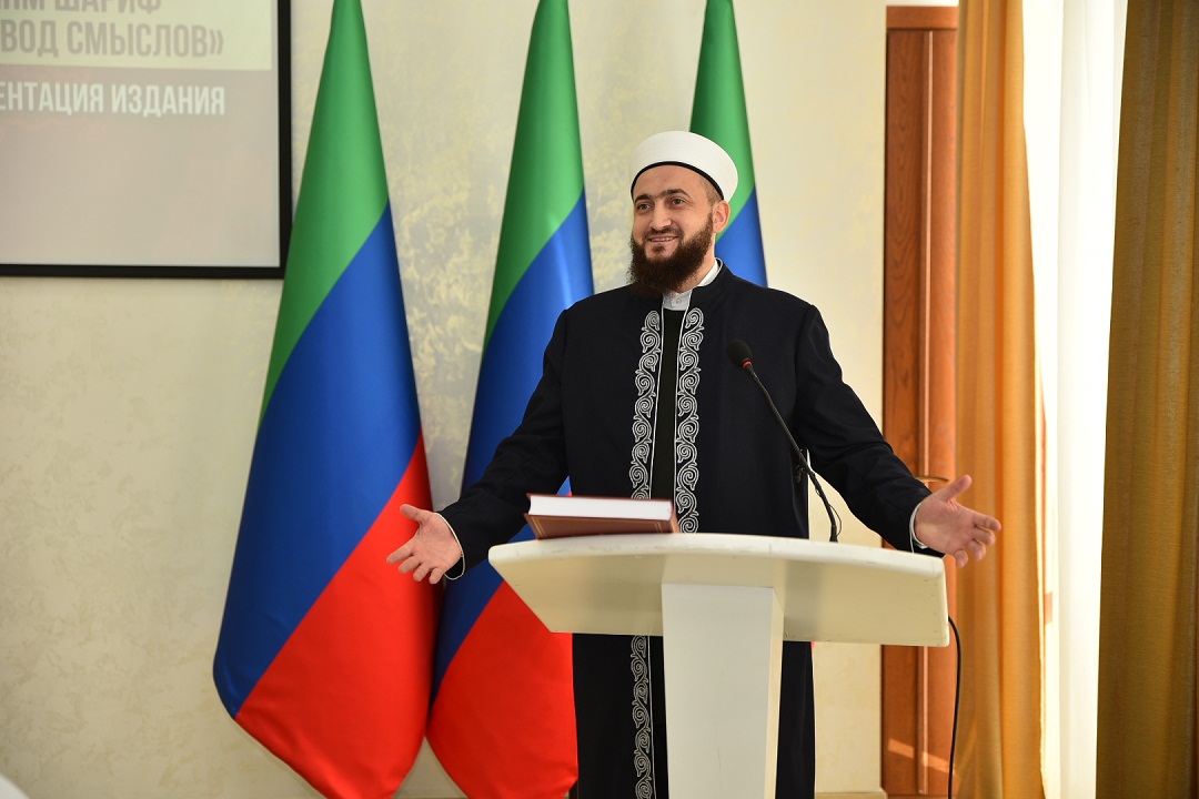 – Бүген безнең өчен тарихи көн. Биредә, Дагыстан җирендә, илебез дин әһелләре җыелды һәм рус телендәге Коръән мәгънәләре тәрҗемәсе тарихта беренче тапкыр киң җәмәгатьчелеккә тәкъдим ителә. Без бүген сезгә, Камил хәзрәт, Россиянең мөселман һәм киң җәмәгатьчелеген шундый зур хезмәт белән нәкъ менә Махачкалада таныштыру турында карар кабул итүегезгә бик рәхмәтле. РФ Президенты Владимир Путин Россия мөселман халыкларының дини илаһият мәктәбен торгызуга аерым игътибар бирә. Чөнки ислам – Россия халыклары мәдәни кодының мөһим өлеше. «Калям Шариф. Перевод смыслов» басмасы – галимнәр алдында торган әлеге бурычны үтәү дә булып тора, чөнки ул мөселман мәгариф учреждениеләрендә белем бирүдә үз ролен уйнаячак.