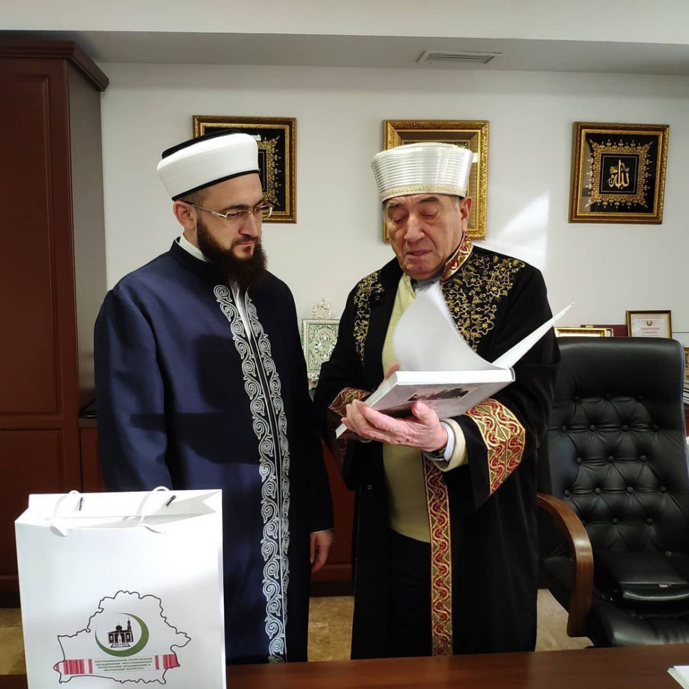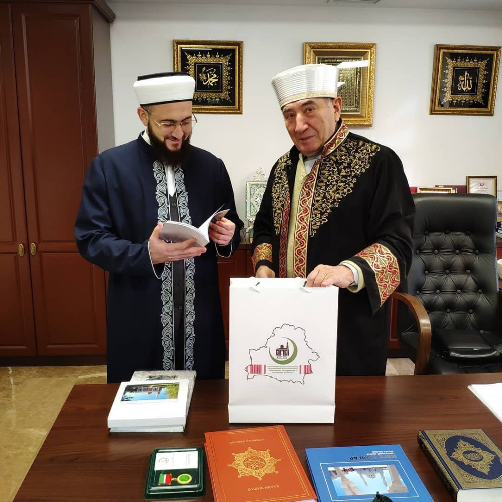 Татарстан мөфтие Камил хәзрәт Сәмигуллин республиканың ТР Президенты Рөстәм Миңнеханов җитәкчелегендәге рәсми делегациясе составында Беларусь башкаласына эшлекле сәфәр кыла. Иң беренче чиратта Татарстан җитәкчеләре төркеме Минскиның Җәмигъ мәчетенә юл тотты. Шунысын билгеләп үтәргә кирәк, быел җәен Камил хәзрәт Белоруссия мөфтие Әбу-Бәкер Шабанович чакыруы буена Минскига барып, белорус мөселманнарының төп рухи үзәге саналган әлеге мәчеттә инде булган иде. Кичә исә Рөстәм Нургали улына Беларусь мөселман җәмгыяте тарихы һәм мөселман дини берләшмәсе эшчәнлеге турында сөйләделәр, шулай ук аңа мәчет буйлап экскурсия үткәрделәр. Намаз уку залыннан тыш, биредә конферец-зал һәм ислам тарихы музее, шулай ук уку сыйныфлары, китапханә бар. Сүз уңаеннан, Камил хәзрәтнең беренче сәфәреннән соң, китапханә фонды “Хозур” нәшрият йорты тарафыннан чыгарылган дини әдәбият белән тулыланды. Моннан тыш, мөфтиятләр арасында җайга салынган хезмәттәшлек кысаларында, ТР мөселманнары Диния нәзарәте тарафыннан әзерләп чыгарылган һәм Россиядә халыкара стандартларга туры килгән дип табылган бердәнбер Коръән басмасының электрон файллары Белоруссия мөселманнарына тапшырылган иде. Кичә Татарстан Президенты Рөстәм Миңнеханов нәкъ менә шушы басманы Әбу-Бәкер Шабановичка 80 яшьлек юбилее уңаеннан истәлекле бүләк рәвешендә тапшырды. Беларусь мөфтияте исә электрон файллар нигезендә басманы ил Президенты Александр Лукашенко фонды өчен махсус итеп, шулай ук аерым зур тираж белән Белоруссия өммәте файдасына чыгарырга планлаштыра. Камил хәзрәт бу юлы да буш кул белән килмәде – дин кардәшләребезгә ул рус телендәге Коръән мәгънәләре тәрҗемәсе – «Калям Шариф. Перевод смыслов» китабының берничә нөсхәсен, шулай ук алга таба текстны белорус теленә күчерү өчен аның электрон файлларын тапшырды. Моннан тыш, Әбу-Бәкер Шабановичның юбилее уңаеннан, ул аңа Татарстан мөселманнары Диния нәзарәтенең 25-еллыгы истәлек медален бүләк итте.