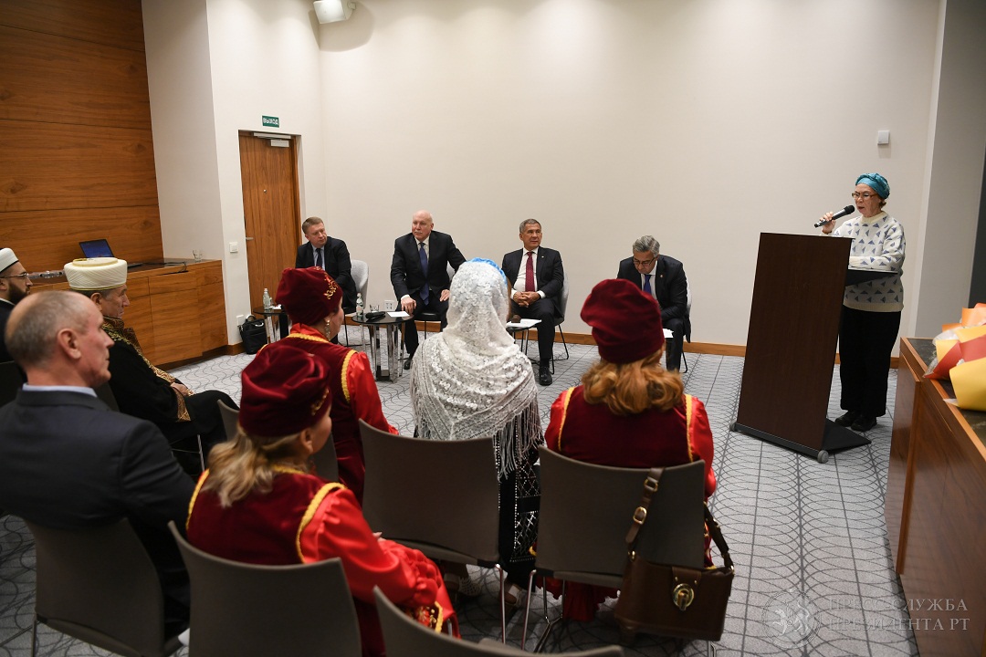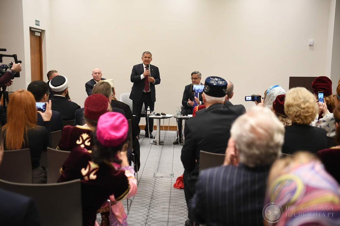 Очрашу барышында милләттәшләребез Татарстан Президентына сораулар, үтенечләр һәм теләкләр белән мөрәҗәгать итү мөмкинлегенә ия булды. Җыелыш милли тел, мәдәният, гореф-гадәтләрне саклауга һәм үстерүгә зур өлеш керткән татар җәмәгатьчелеге вәкилләренә бүләкләр тапшыру белән тәмамланды. Шунысы игътибарга лаек: Минскига үзенең беренче сәфәре вакытында Камил хәзрәт милләттәшләргә һәм дин кардәшләргә туган тел һәм милли үзнечәлекләрне саклап калуның әһәмиятен турында вәгазь сөйләгән иде.