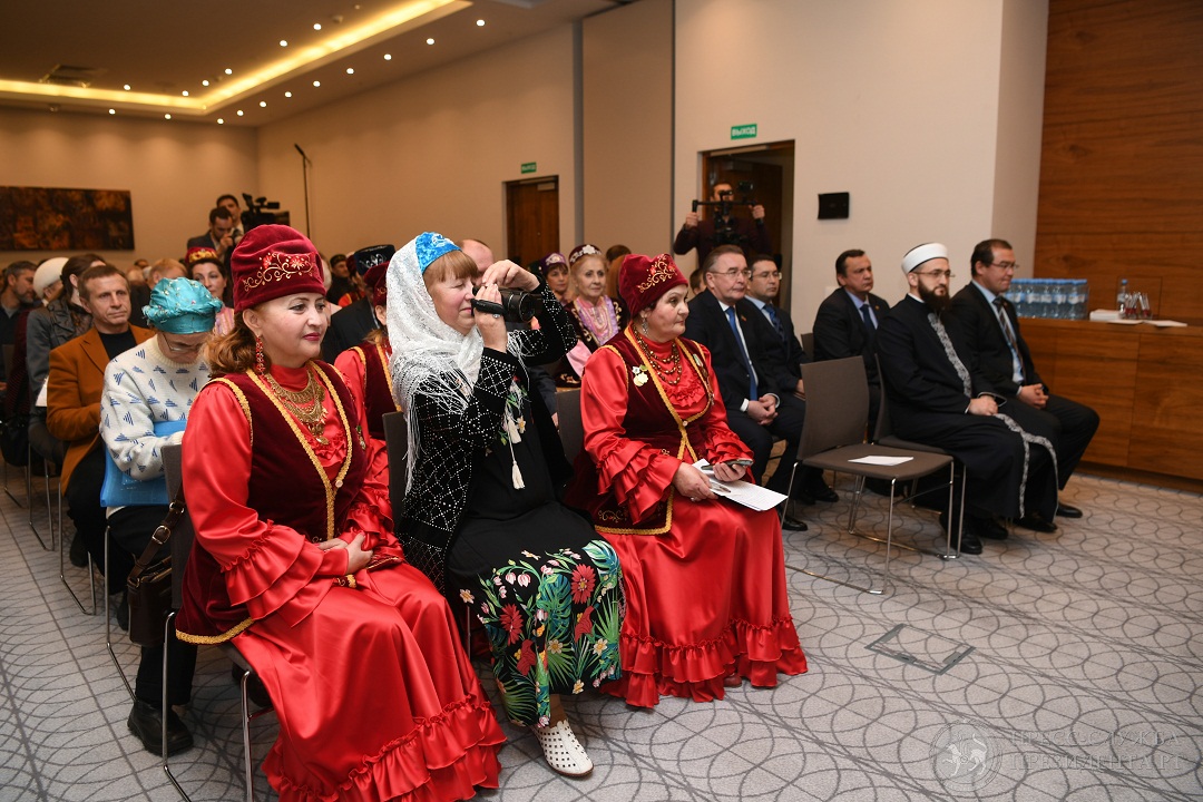 Җәмигъ мәчетендә булганнан соң, Рөстәм Нургали улы җитәкчелегендәге делегация Беларусь Республикасының татар җәмгыяте активы белән очрашуга юнәлде. Очрашуда Россия Федерациясенең Беларусь Республикасындагы гадәттән тыш һәм тулы вәкаләтле вәкиле Дмитрий Мезенцев та катнашты. Ул кунакларны һәм илдәшләрен сәламләп, белорус татарларының милли традицияләрен һәм мәдәниятен саклап калуның мөһимлеген билгеләп үтте. «Бүген биредә барыбызның да бердәм гаилә хисе бар. Нинди телдә сөйләшүебез мөһим түгел. Россия һәм Беларусь халыклары, бөтен СССР халыклары иңне-иңгә куеп Ватанны дошманнан сакладылар. 11 этник татар, Беларусь гражданнары Советлар Союзы геройлары булдылар – бу шулай ук бик мөһим», - дип ассызыклады ул.