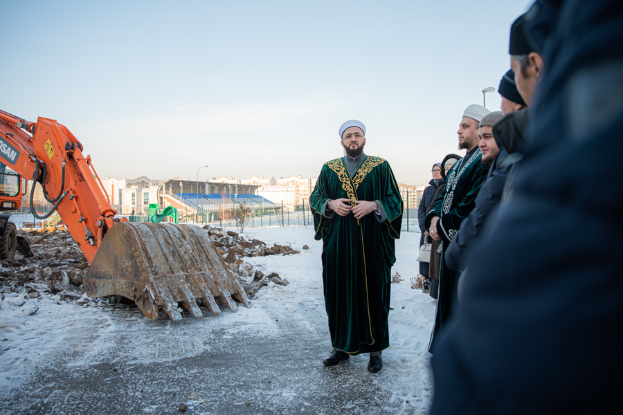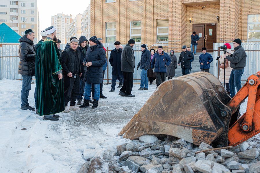 Алга таба тәкбир әйтелде һәм мөфтинең хәер-фатыйхасы белән фундамент салуга әзерлек башланып китте – экскаватор эшкә кереште.