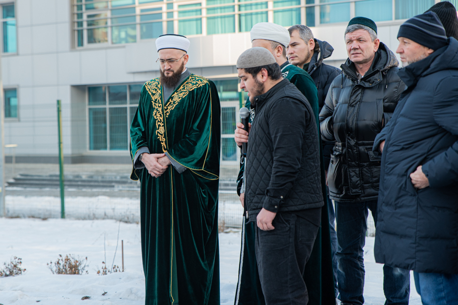 – “Әлү Гыймран” (Гыймран гаиләсе) сүрәсенең 31-32-нче аятьләрендә Аллаһы Тәгалә безгә нәрсәләр әйтә? “(Рәсүлем!) Әйт: “Әгәр сез Аллаһны сөясез икән, миңа иярегез, шулвакыт Аллаһ та сезне сөячәк һәм гөнаһларыгызны гафу итәчәк. Аллаһ – (гөнаһларны күпләп) Гафу итүче, Рәхимле”. Әгәр сезнең гамәлләрегездә сөннәт булса, димәк, сез Пәйгамбәребезне яратасыз. Әгәр дә сезнең тормышыгызда сөннәт рәвеше булмаса, яратмыйсыз дигән сүз. Ин шә Аллаһ, шушы аятьләр белән төзелешне башлыйбыз. Бу үзәктә дә безнең динебез белән яшәүчеләр, галимнәр чыгар дигән өметтә калабыз, - дип әйтте мөфти хәзрәт һәм җәмәгать белән дога кылды.