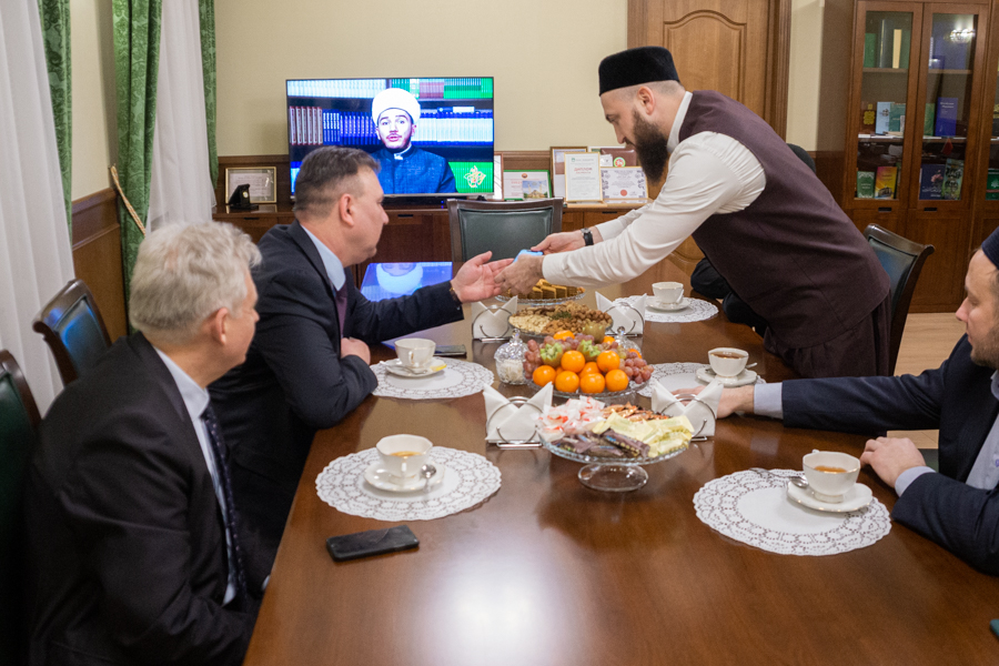 Мөфти хәзрәт мөхтәрәм кунакны нәзарәтнең күркәм проекты – татар һәм рус телләрендә тапшырулар алып баручы “Хозур ТВ” мөселман телевидениесе эшчәнлеге белән таныштырды. Камил хәзрәт әлеге телеканалны татарстанлылардан тыш, Башкортостан, Түбән Новгород, Оренбург, Мәскәү, Воронеж өлкәләре дә карый алуын искәртеп узды һәм киләчәктә бөтен Россия тамашачыларына карау мөмкинлеге буенча фикерләрен җиткерде.