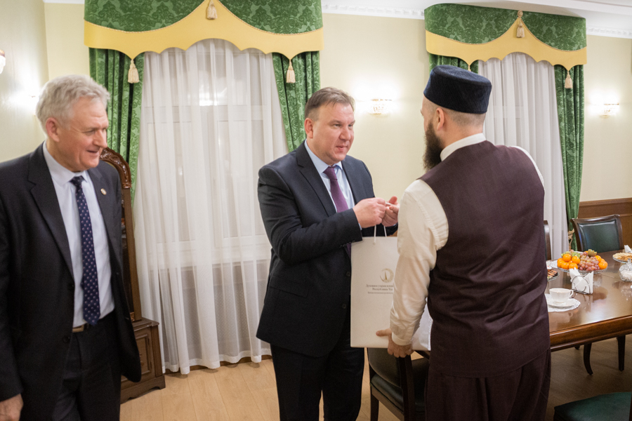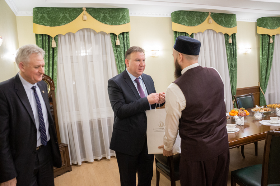 “Традицион диннәр бары яхшылык җиткерә. Без моны гаилә кыйммәтләрен саклауда да күрәбез. Халыклар үзләренең мәдәни кодларын һәм рухи кыйммәтләрен сакларга тиешләр. Сезнең хезмәтегездә уңышлар телим” – дип ихлас теләкләрен җиткерде Милләтләр эшләре буенча федераль агентлык җитәкчесе урынбасары Михаил Ипатов. Мөфти Камил хәзрәт Сәмигуллин, үз чиратында, истәлеккә “Хозур” китапларын бүләк итте.