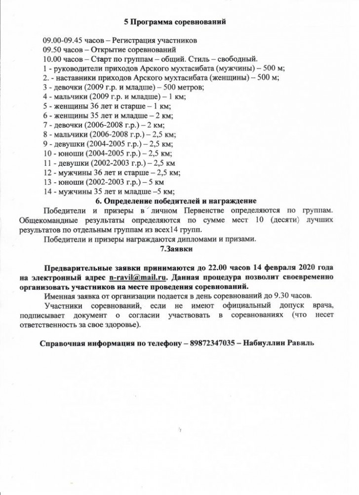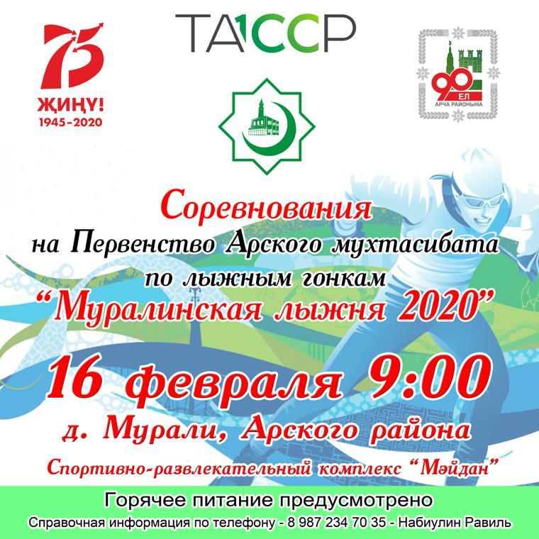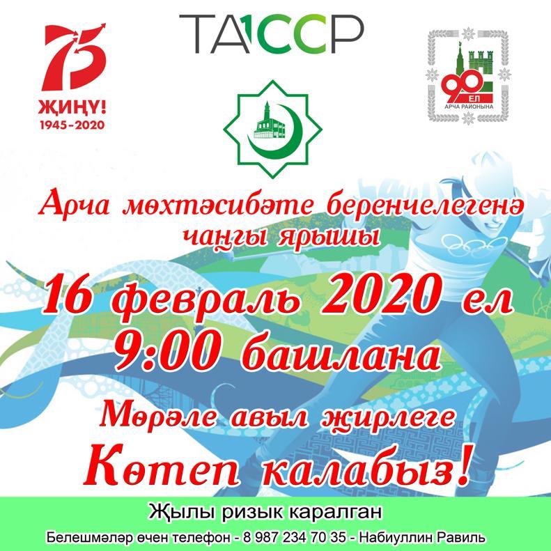 Җөмәдәл-ахир аеның 22-нче көнендә (16-нчы февральдә), Арча мөхтәсибәте беренчелегенә Мөрәле авылында чаңгы ярышлары уздырылачак. Әлеге спорт чарасы ТАССР оешуга 100 ел тулуга, Бөек Җиңүнең 75 еллыгына, Арча районының 90 еллыгына багышлап оештырыла. Ярышларда катнашучыларны теркәү иртәнге 09.00 сәгатьтә Мөрәле авылында “Мәйдан” спорт-күңел ачу полигонында башланып китәчәк. Чаңгы ярышында ир-атлар һәм хатын-кызлар өчен, яшь категорияләренә карап, махсус дистанцияләр булдырылган. Барлыгы – җиде төркем: 2009-нчы елда туганнар һәм аннан яшьрәкләр, 2006-2008, 2004-2005, 2002-2003, 35 яшь һәм аннан яшьрәкләр, 36 яшь һәм аннан өлкәнрәкләр, шулай ук Арча мөхтәсибәте имамнары, мәчет каршындагы курсларда белем бирүче мөгаллимәләр. Дистанциянең озынлыгы, катнашучының җенесенә һәм яшенә карап, 500 метрдан алып 5 километрга кадәр ераклыкны тәшкил итә. Ярыш нәтиҗәләре буенча, шәхси беренчелек һәм командалар буенча җиңүчеләр һәм призерлар билгеләнәчәк, аларга кыйммәтле бүләкләр һәм дипломнар тапшырылачак. Спорт чарасын ТР мөселманнары Диния нәзарәтенең Арча районы мөхтәсибәте оештыра һәм, елдагыча, чаңгы ярышында Татарстанда яшәүче һәр кеше килеп катнаша ала. Чаңгычылардан гаризалар 2020-нче елның 14-нче февраленә кадәр n-ravil@mail.ru электрон адресына кабул ителә. Белешмәләр өчен телефон: 89872347035 (Равил Нәбиуллин).