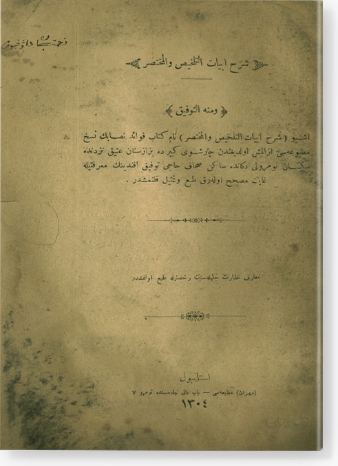 Иске китаплар һәм кулъязмалар арасында, мәсәлән, Пәйгамбәребезнең ﷺ әдәбенә багышланган «Китаб Макарим әл-ахлак» китабы бар (авторы Әминаддин Әбу Наср әт-Тәбриси). 1886 елда Истанбулда басылып чыккан «Шәрх Абъят әт-тәлхыс вә әл-мохтәсар» китабының ике йөздән артык бите гарәп риторикасы һәм шигырь төзелешенә багышланган. 1912 елгы «Мүнтәхәб тәҗвид» дәреслеге сорау һәм җавап рәвешендә 26 дәресне үз эченә ала. Китап авторы Зөфәр Касими кыска итеп һәм мисаллар белән тәҗвид нигезләрен аңлата.