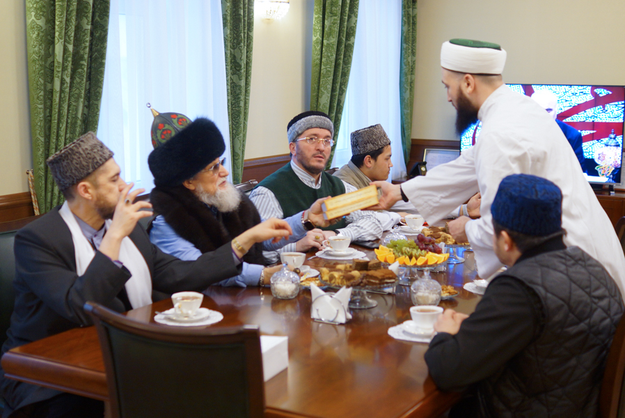 Камил хәзрәт очрашу башында ук Тәлгать хәзрәткә Коръән елы кысаларында Татарстан мөфтияте тарафыннан татар телендә нәшер ителгән “Кәлам Шәриф. Мәгънәви тәрҗемә” китабын тапшырды. Тәлгать хәзрәт кыйммәтле бүләк өчен рәхмәтен белдерде, зур кызыксыну белән әлеге фундаменталь хезмәт белән танышты һәм тәрҗемәне камилләштерү буенча үз тәкъдимнәрен җиткерде. Шулай ук Татарстан мөселманнары башлыгы очрашу истәлеге итеп кунакка нәзарәтнең “Хозур” нәшрияты тарафыннан басмага әзерләнгән татар дин белгече Мөхәммәд Морад Рәмзинең «Тәлфик әл-әхбар вә тәлких әл-әсәр фи вәкаигъ Казан вә Болгар вә мөлүк әт-татар» («Казан, Болгар һәм татар хакимнәре турында хәбәрләр, вакыйгалар, риваятьләр җыелмасы») репринт басмасының тәүге нөсхәсен бүләк итте. Әлеге китап Россиядә М.Рәмзинең иң танылган тарихи хезмәтләреннән санала.