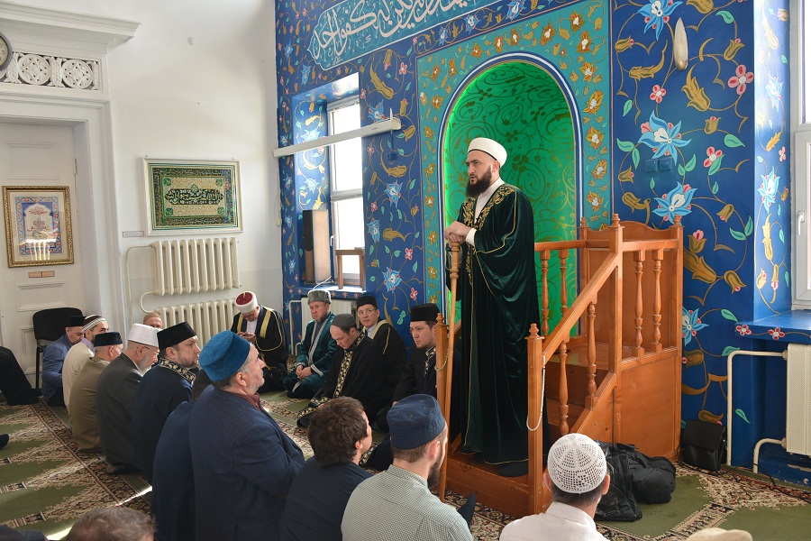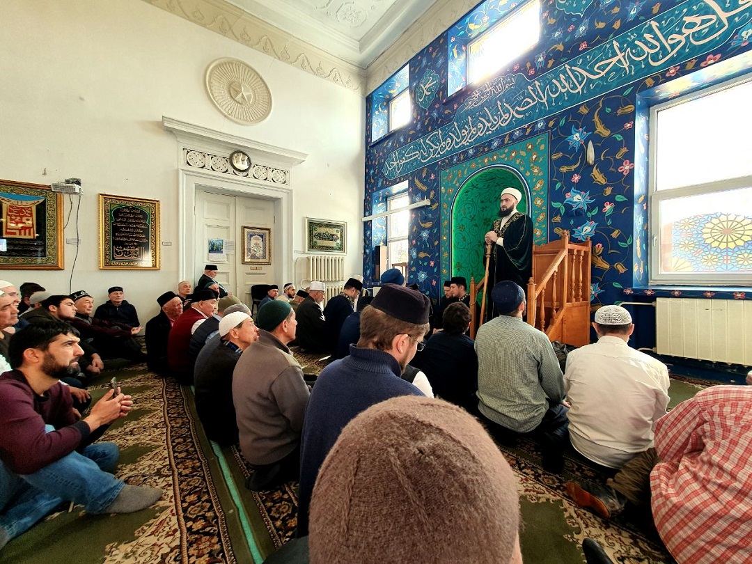 Җомгага җыелган милләттәшләр һәм башкорт кардәшләр алдында кунак булып килгән мөфти ике тугандаш халык арасында татулык, туган тел, милли үзаң турында вәгазь сөйләде. Аерым алганда, хәзрәт татар һәм башкорт милләтләре арасындагы туганлык җепләрен, кардәш һәм күрше хакларын, гаиләдә һәм өммәттә дини һәм милли гореф-гадәтләрне сакларга өндәде. Боларның әһәмиятен мөфти “Әл-Хүҗүрат (Бүлмәләр) сүрәсенең 10 аяте белән дәлилләде: