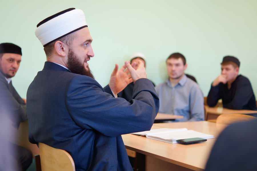 Алга таба мөфти хәзрәт шәкертләрнең укудагы уңышлары белән танышты, киләчәккә планнарын сорады. Камил хәзрәт яшьләргә үзенең киңәшләрен биреп, катнашучыларны “Хозур” нәшрияты эшчәнлеге белән таныштырып үтте. “Нәшриятыбыз җиде ел эчендә 250 төрле исемдәге китап бастырды, бүгенге көндә беренче мөселман телевидениесе “Хозур ТВ” уңышлы эшли. Киләчәктә аерым татар һәм рус телләрендә сөйләүче канал булдырырга ниятлибез”, – диде ул. Моннан тыш, студентлар хәләл ашамлыклар җитештерү нечкәлекләренә, сату-алу мөнәсәбәтләренә кагылышлы, ислам финанслары буенча үзләрен кызыксындырган сорауларны бирде. Егетләр һәм кызлар, үз чиратында, Казанда белем күтәрү курслары, ачык лекцияләр, мөселман галимнәре белән очрашулар үткәрү буенча тәкъдимнәре белән уртаклаштылар. Әңгәмә бүгенге очрашуда катнашкан һәр кеше өчен дә файдалы булды.