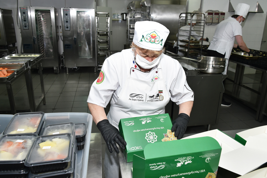 Ифтар җыелмаларын тутыруда көн саен егерме бишкә якын волонтёр хезмәт куя. Ифтар җыелмаларын әзерләгәндә һәм аларны китереп тапшырганда оештыручылар тарафыннан коронавирус инфекциясе таралуны булдырмау өчен Роспотребнадзор тарафыннан тәкъдим ителгән барлык чаралар да күрелә. Ланч-боксларга түбәндәге ризыклар керә: су, чәк-чәк, хөрмә, токмач, икенче аш (кәбестә һәм тавык ите белән бәрәңге), өчпочмак һәм алма бәлеше. Бер ланч-боксның бәясе 300 сум.