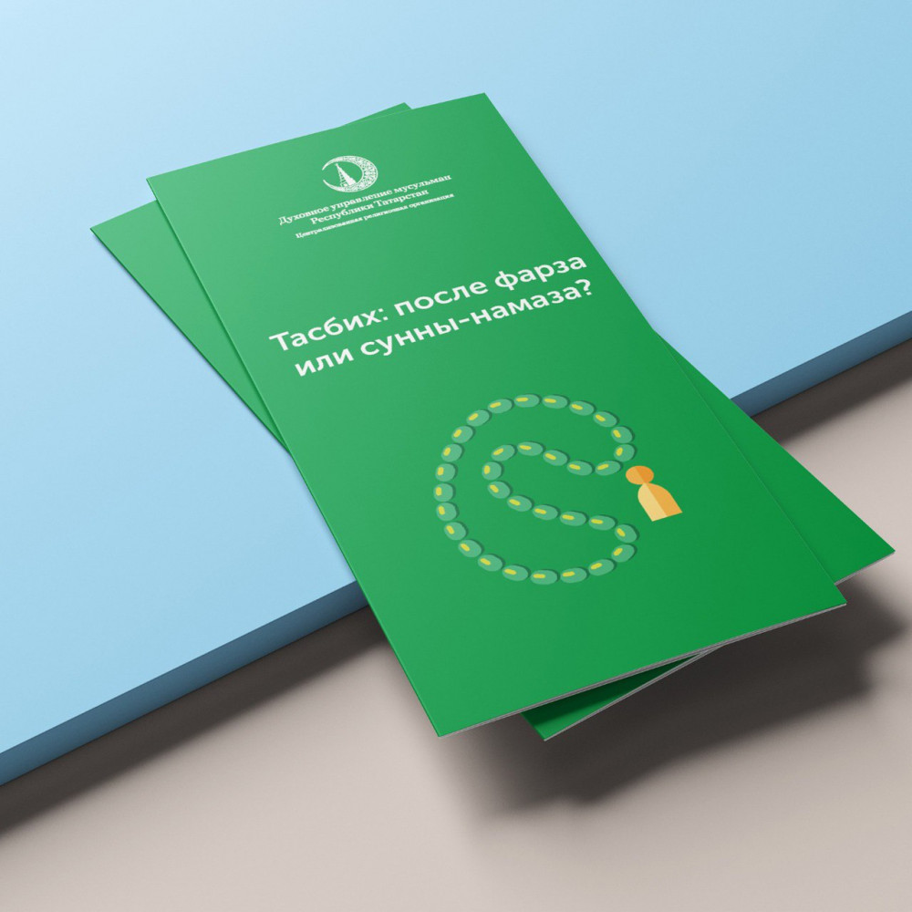 Татарстан мөселманнары Диния нәзарәтенең «Хозур» нәшрият йорты «Тәсбих: фарыз яки сөннәт намаздан соңмы?» буклетын бастырды. Гыйлемсезлек һәм дөрес аңламау нәтиҗәсендә, күпләр дини сорауларны үзләренчә аңлаталар. Кайбер мөселманнар фарыз намаздан соң ук тәсбих әйтергә тотыналар, гәрчә имам һәм мәчеткә йөрүче калган кешеләр тәсбихне сөннәт намаздан соң әйтсәләр дә. Имам дөрес эшләми, дип актив агитация алып баручылар да бар. Әлеге сорауга җавап бирү өчен, бу буклетта иң элек галимнәребезнең методологиясе китерелә, аннан соң мөһим нәтиҗәләр чыгарыла.