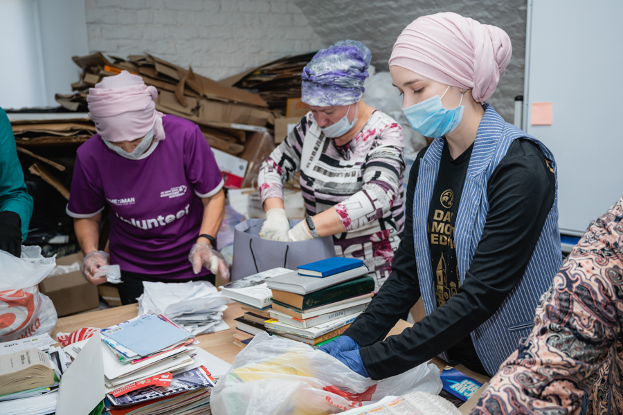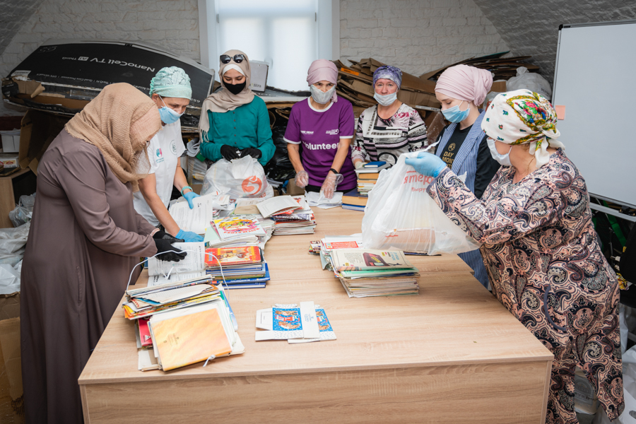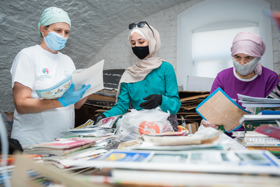 Искә төшереп узыйк, җәйнең беренче көнендә мөфтият “Ак кәгазьгә яңа тормыш” республикакүләм макулатура җыю хәйрия акциясен игълан иткән иде. Акция 2020 елның 1 июленә кадәр дәвам итте. Бу елгы акциянең әһәмиятле үзенчәлеге − Аллаһ исемнәрен искә алган, Коръән аятьләре һәм хәдисләр очраган китап һәм кәгазьләр кабул ителеп, оештыручылар аларны шәригать кануннары буенча яндырып утильләштерде. Кәгазьләрне аеруда 18-дән 60 яшкә чаклы 15 волонтер катнашты. Республикадагы санитар-эпидемиологик вәзгыятьне истә тотып, авырудан саклану чаралары кулланылды.
