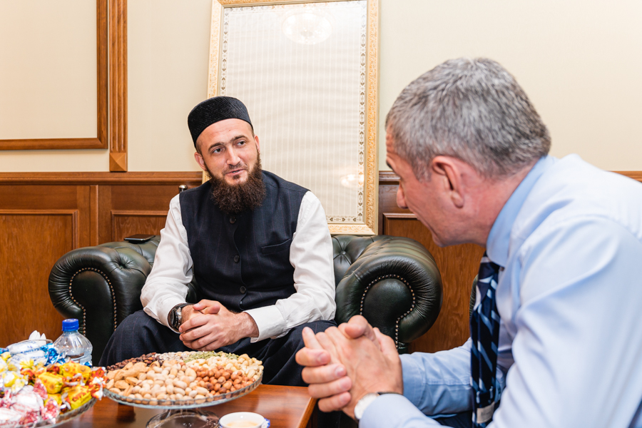 Алга таба Камил хәзрәт кунакка Татарстан мөфтиятенең күпьяклы эшчәнлеге һәм өстенлекле юнәлешләре турында сөйләде: фәнни-дини, мәгърифәт һәм дәгъвәт, нәшрият, хәйрия, яшьләр белән эшчәнлек һәм башкалар; шулай ук Чечен һәм Татарстан Диния нәзарәтләренең үзара кисешү нокталарын искә алды. Очрашу барышында мөфтиятнең Чечен Республикасы башлыгы вәкиле белән хәзмәттәшлекне көйләү мөмкинлекләре каралды. Асламбәк Харонович уртак хезмәттәшлекне яшьләр сәясәтеннән башларга тәкъдим итте, чөнки ул татар һәм чечен яшьләренә уртак булган проблемаларга кагыла.