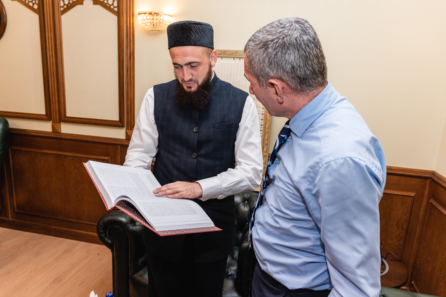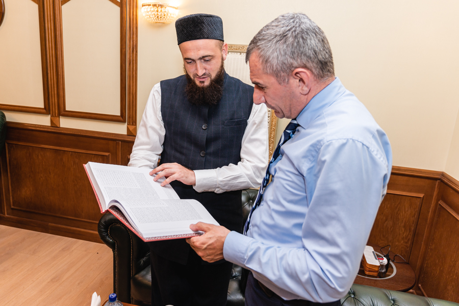 Бүген, Зөлкагъдә аеның 15-нче көнендә (6 июльда), Диния нәзарәтендә мәртәбәле кунак булып китте — ТР-дагы Чечня Республикасы башлыгы вәкиле Асламбәк Бердукаев. Тәүге очрашу истәлеге итеп мөфти Камил хәзрәт Сәмигуллин мөхтәрәм кунакка истәлеккә былтыр Диния нәзарәте тарафыннан әзерләнгән һәм Махачкалада Төньяк Кавказның дин әһелләре өчен уңышлы тәкъдим ителгән рус телендәге “Калям шариф. Перевод смыслов” басмасын бүләк итте. Асламбәк Харонович Камил хәзрәткә бүләге өчен рәхмәтен белгерде, китапның чыгарылыш тарихы белән кызыксынды һәм бу төпле хезмәтне югары бәяләп, Россия өммәтендә аны танылган икәнен билгеләп узды.