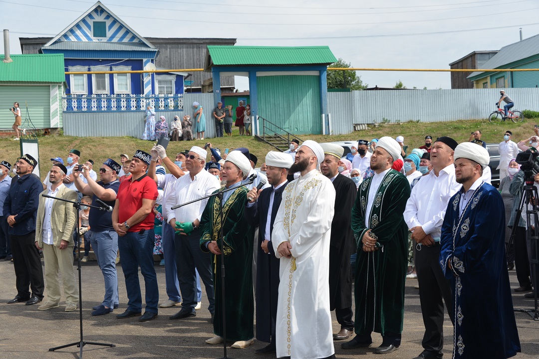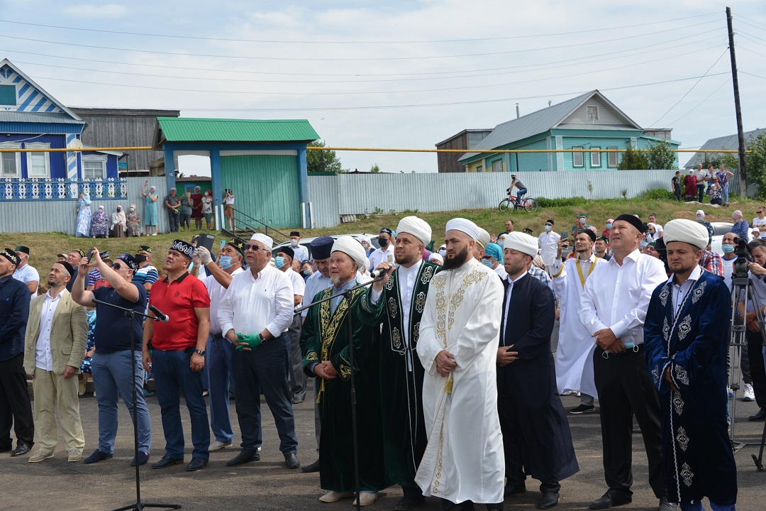 Рәсми чыгышлар тәмам булганнан соң, тәкбир әйтелеп, мәчет манарасына ай урнаштырылды. Тантанадан соң ТРның баш казые Җәлил хәзрәт Фазлыев мәчетнең озак еллар халыкка хезмәт итүен теләп, шулай ук аны төзетүче күренекле сәүдәгәр Ибраһим Борнаевның рухлары шат булуын теләп догалар кылды.