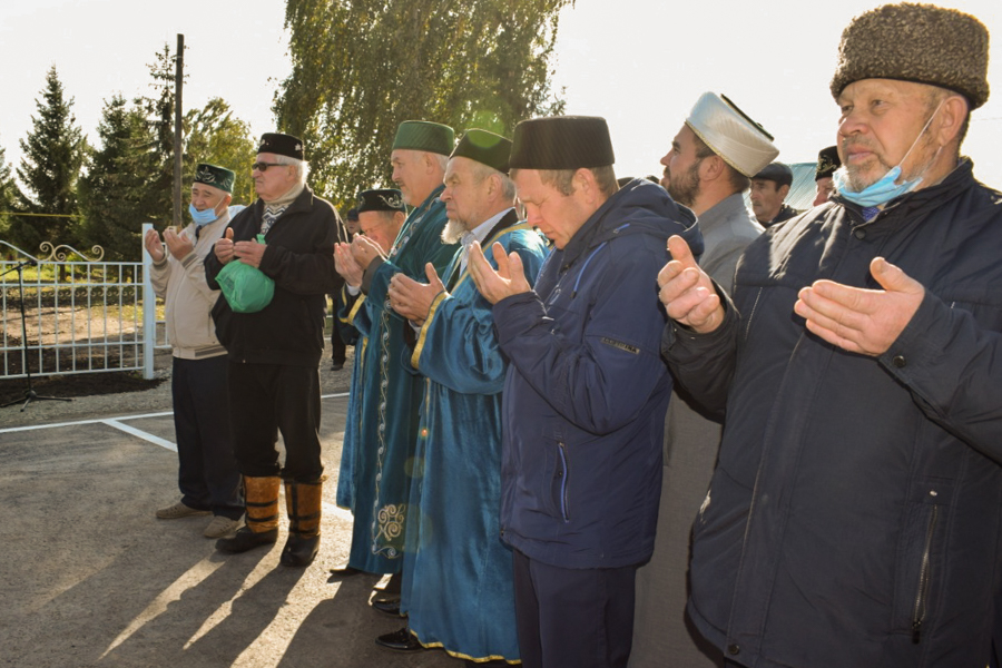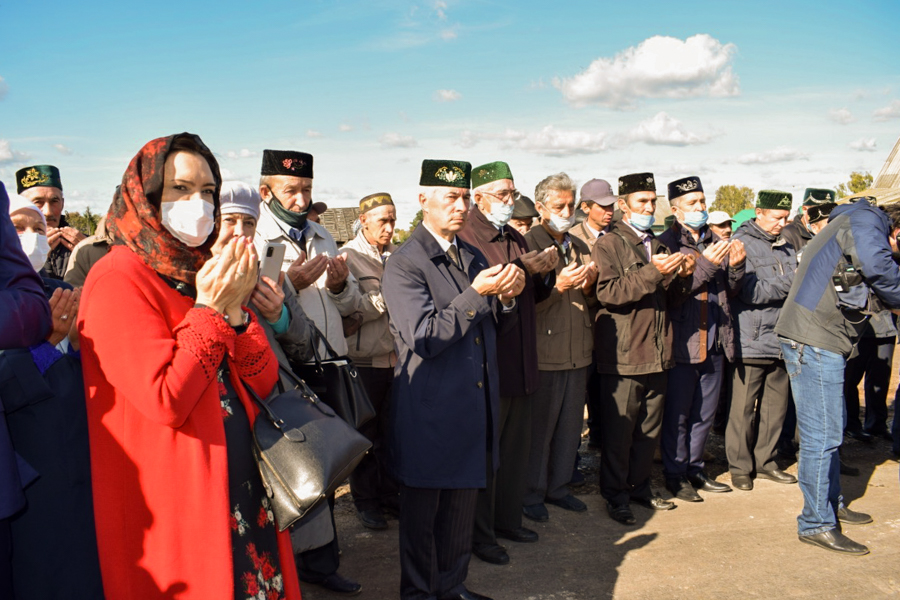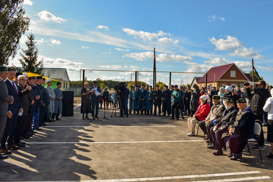 Татарстан мөфтиенең мөхтәсибәтләр белән эшләү буенча киңәшчесе, казый, Аксубай районы имам-мөхтәсибе Равил хәзрәт Зөфәров Коръән укып дога кылды. Шуннан соң Аксубай районы башлыгы Камил Камал улы Гыйльмановка, ТР Дәүләт Советы рәисе урынбасары Марат Готыф улы Әхмәтовка, ТР Дәүләт Советы депутаты Рәис Әхтәм улы Сөләймановка, ТР Урман хуҗалыгы министры Равил Әфрәим улы Кузюровка сүз бирелде.