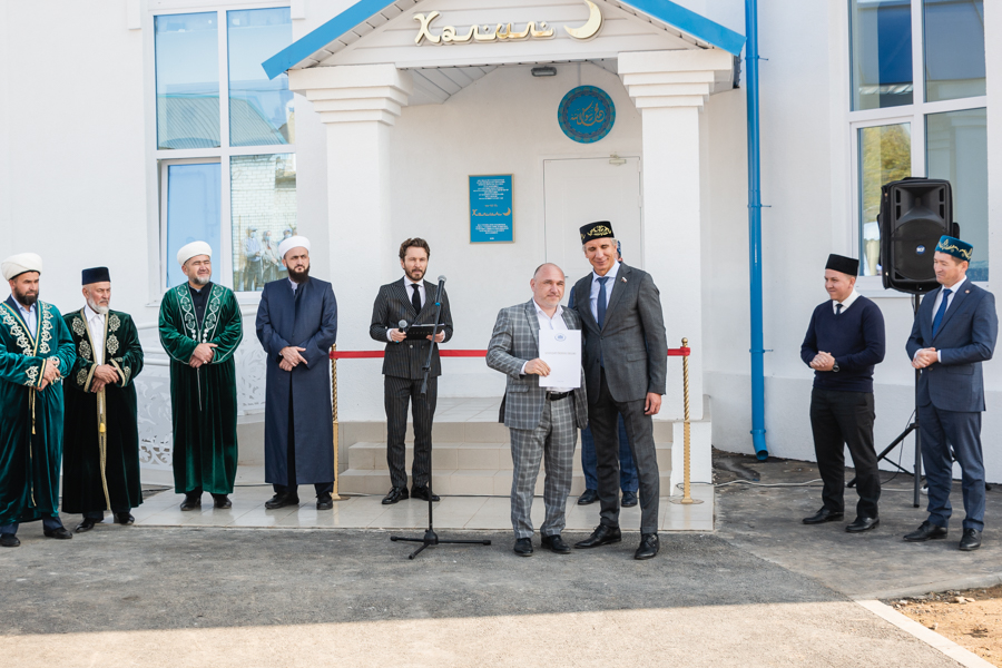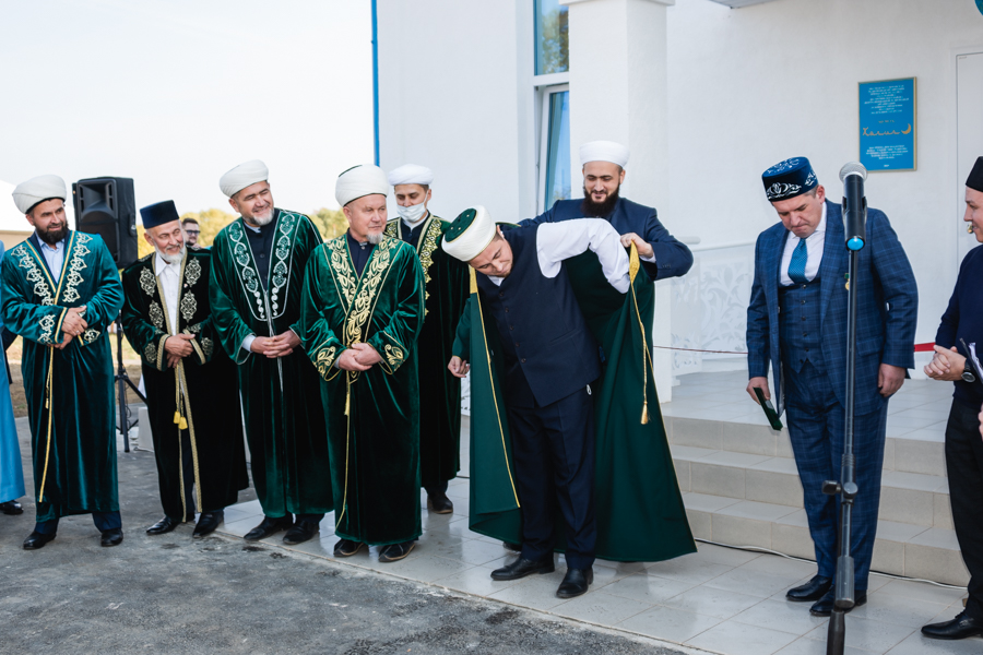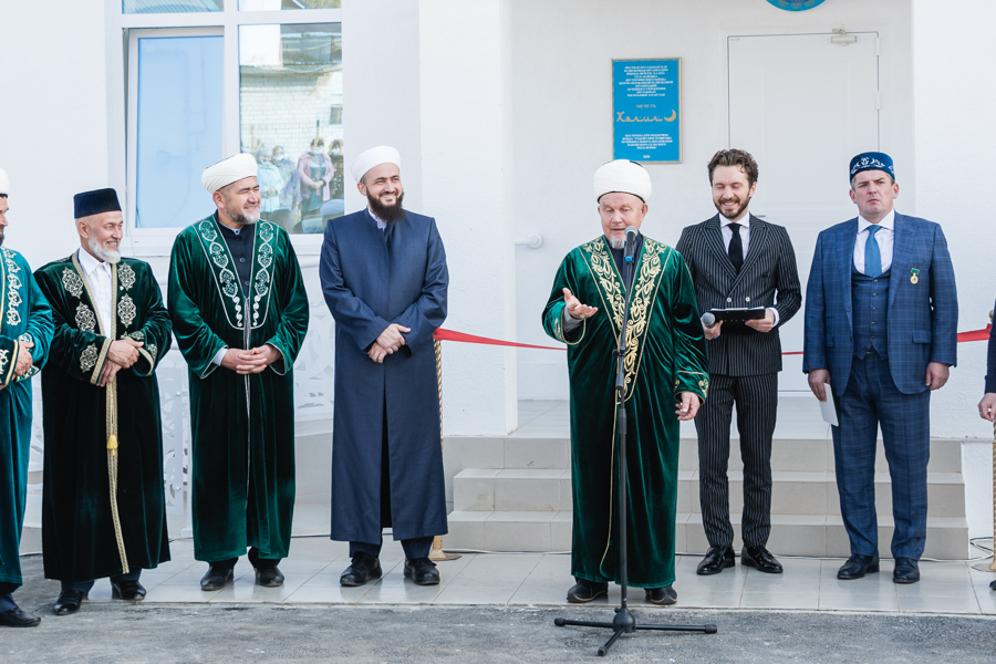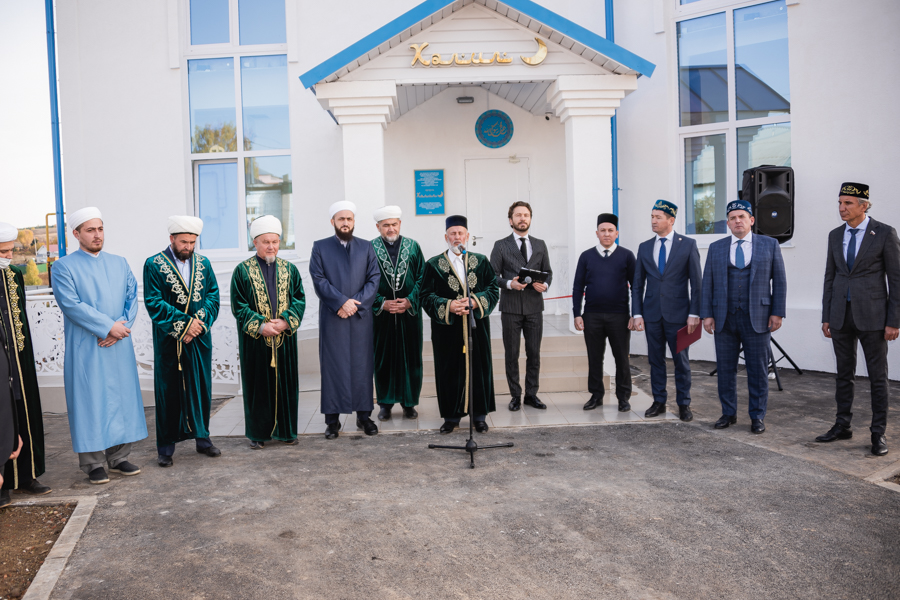 Район җитәкчелегенә һәм иганәчеләргә рәхмәт сүзләре әйтелеп, чыгышлар тәмамланганнан соң, кунаклар, тасманы кисеп, мәчеткә керде. Биредә беренче җомга вәгазен һәм намазны мөфти Камил хәзрәт Сәмигуллин алып барды. Ул җыелган халыкка яшьлекнең кадерен белү, дин юлында хезмәт итүнең әһәмияте, мөселман кешесенең җәмгыять алдындагы бурычлары һәм вазыйфалары турында сөйләде.