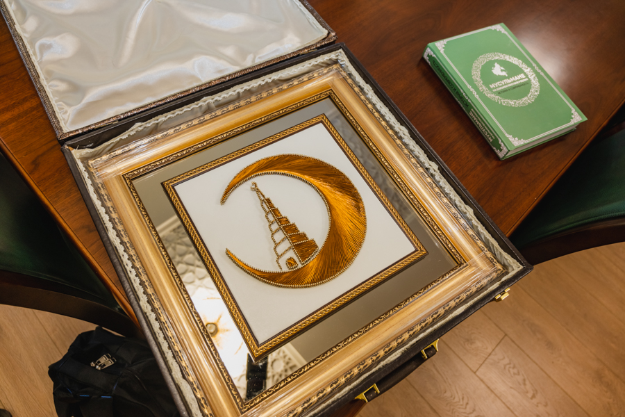 Очрашу ахырында Җәмәл хәзрәт Гарифуллин Ерак Көнчыгышта ислам тарихы энциклопедиясен һәм Татарстан мөфтиятенең кулдан ясап эшләгән логотипын бүләк итте. Мөфти Камил хәзрәт Сәмигуллин үз чиратында кунакларга Нәзарәтнең “Хозур” нәшрияты басмаларын һәм кул сәгатьләре тапшырды.
