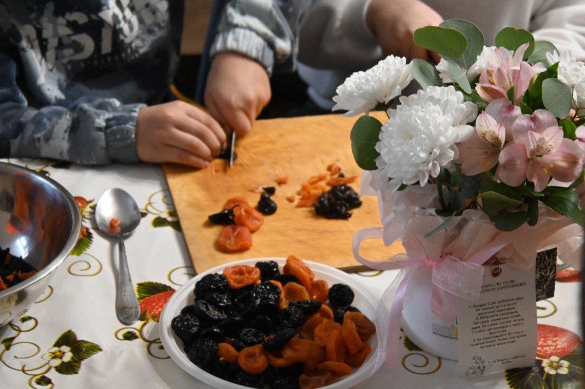 Башта алар кипкән җиләк-җимешләрдән тәмле кәнфитләр ясау буенча мастер-класста катнашты: кәнфитләр киләчәктә МХО зонасына солдатларга күчтәнәч итеп юлланачак. Мастер-классны "Зәкят" фондының "Хәят" үзәге педагоглары Ирина Җиһаншина һәм Эльвира Вәлиева үткәрде.