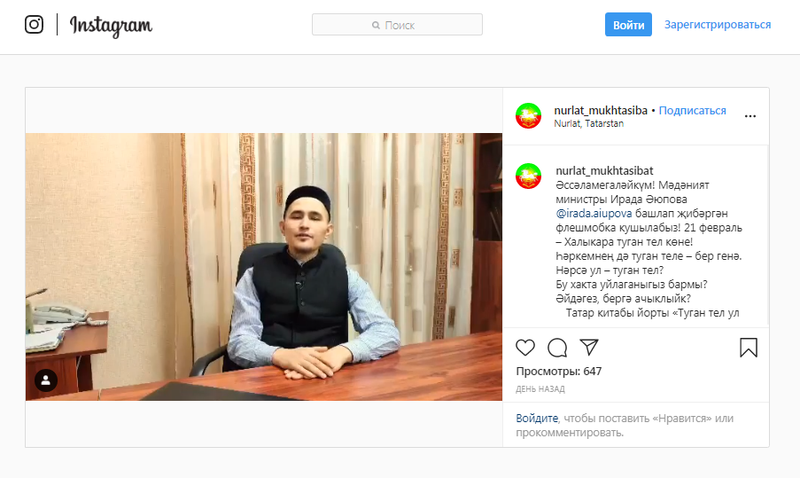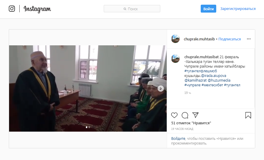В честь дня родного языка имамы Татарстана и мусульманская молодежь читают в социальных сетях стихи о родном языке. Таким образом, они решили привлечь внимание широкой общественности и единоверцев к этой знаменательной дате, а заодно и приняли участие во флешмобе «Родной язык – это …», объявленной в Instagram.