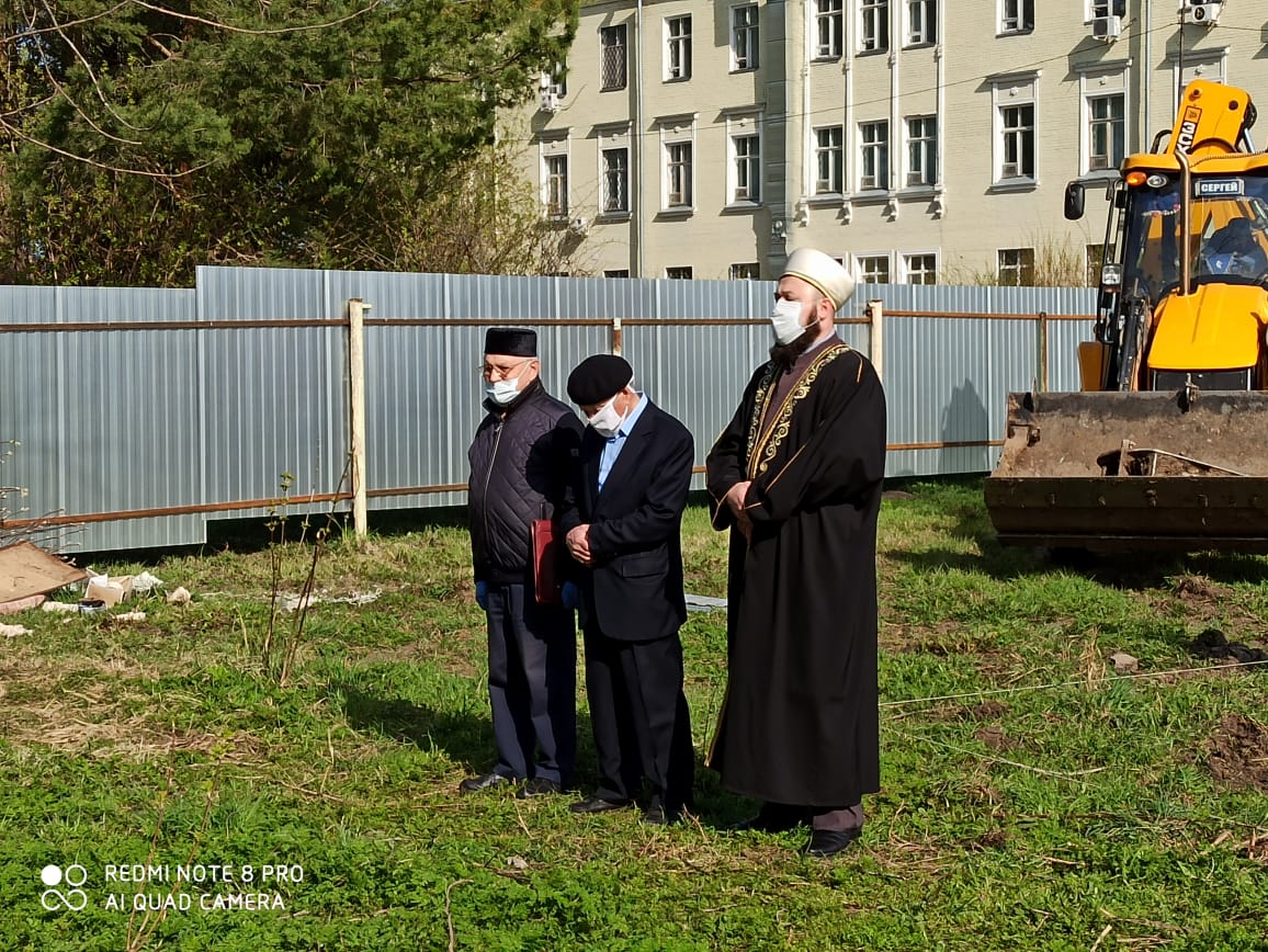 После прочтения молитвы и аятов Священного Куръана при помощи специальной техники строители начали готовить котлован под фундамент будущей мечети.