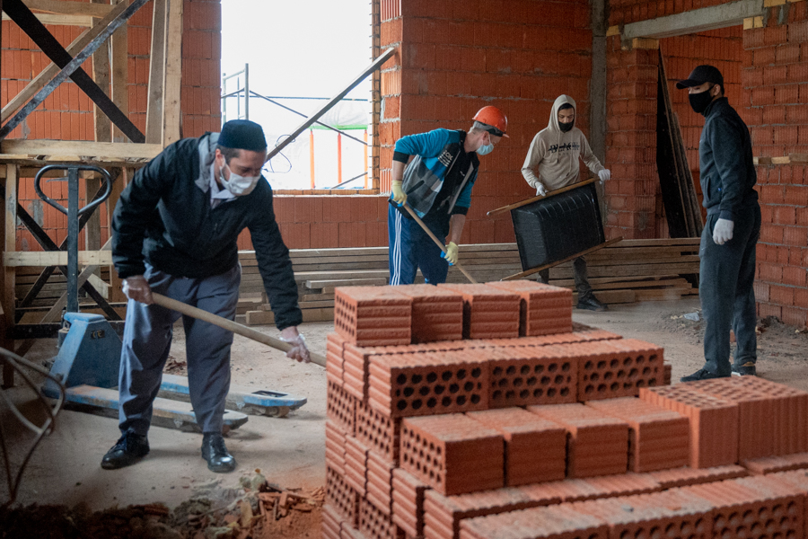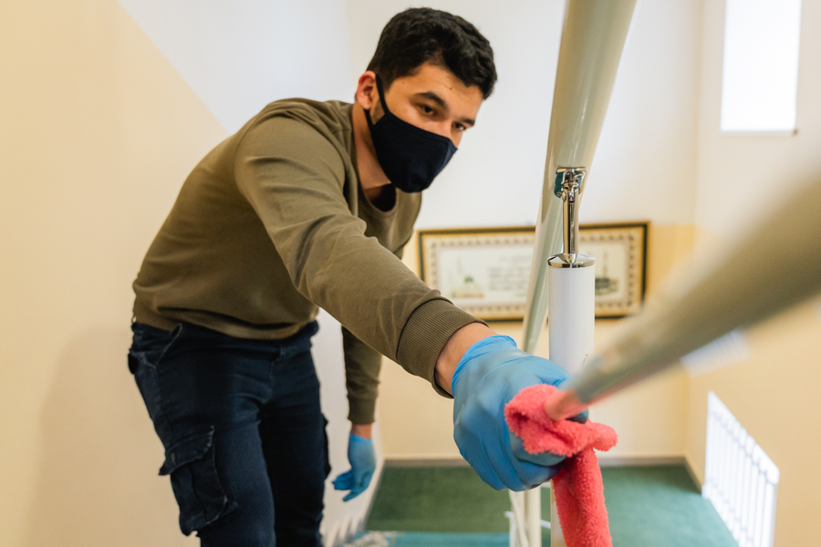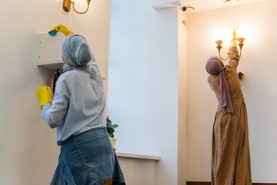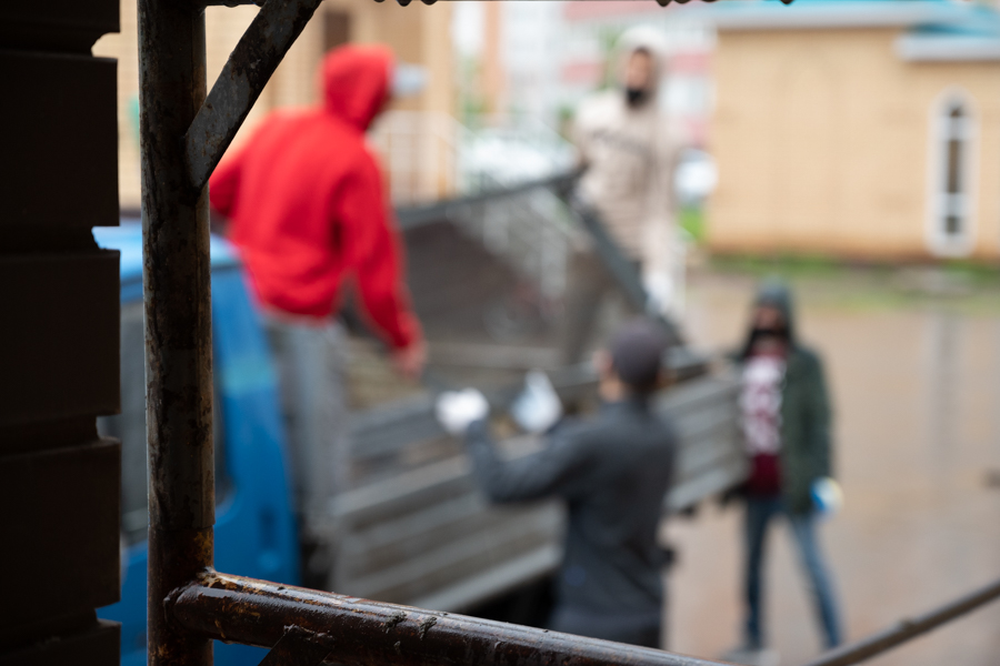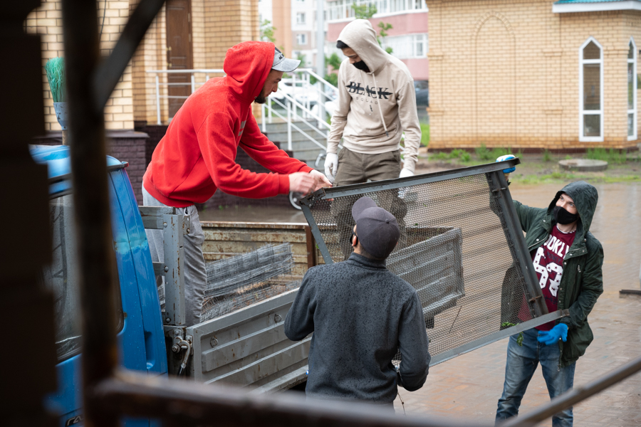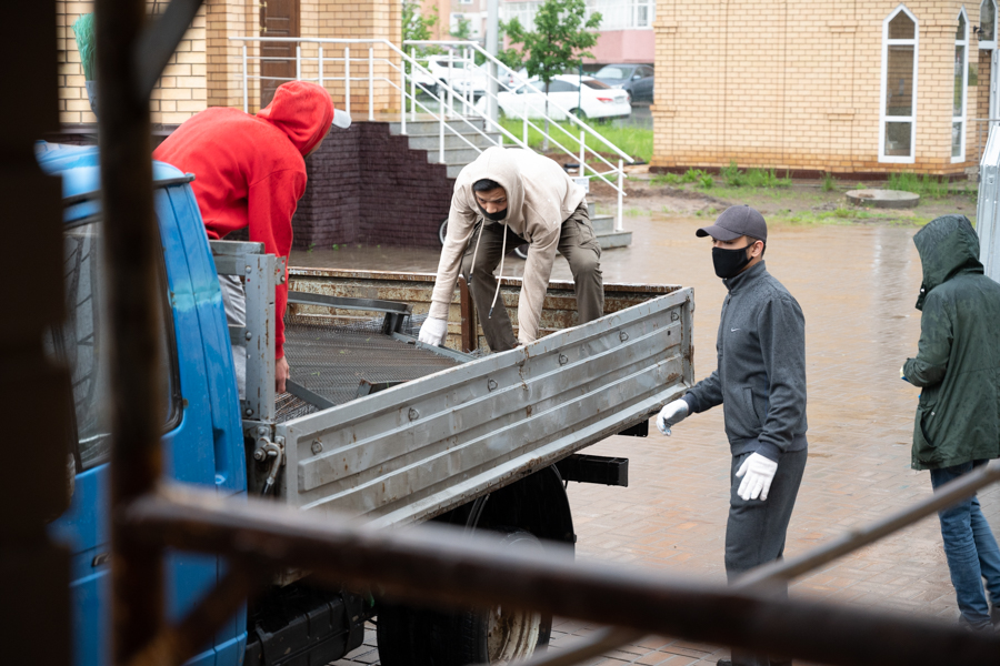 Далее волонтеры разделились на группы и приступили к работе. Работы хватило всем: девушки протирали пыль, мыли окна, двери, почистили ковры. Юноши навели порядок в новом строящемся объекте: почистили строительный мусор на первом этаже Исламского центра. Молодые люди вынесли остатки кирпичей на носилках, подготовили здание к чистовой отделке, перенесли необходимые для строительства материалы и инструменты. Из-за обильного дождя работы во дворе мечети пришлось отложить. Во время уборки все ребята использовали индивидуальные средства защиты: маски, перчатки и рабочую одежду.