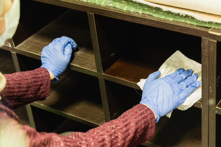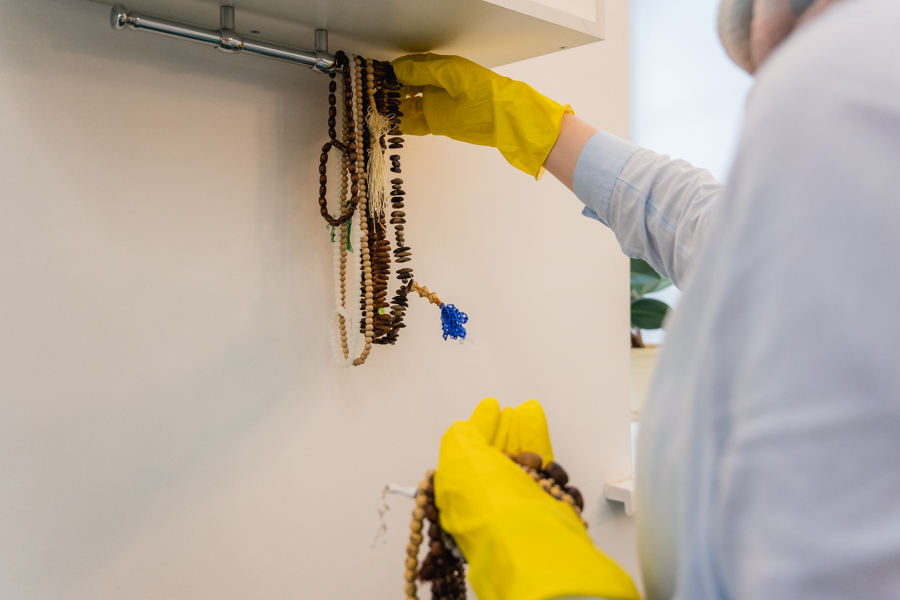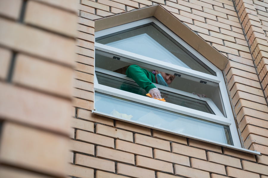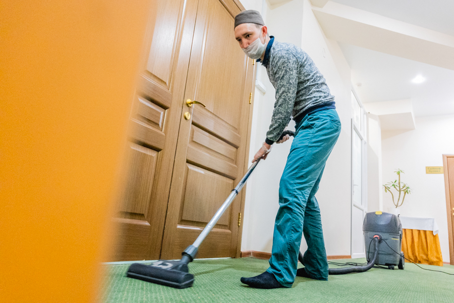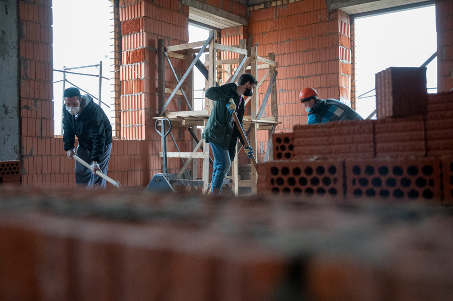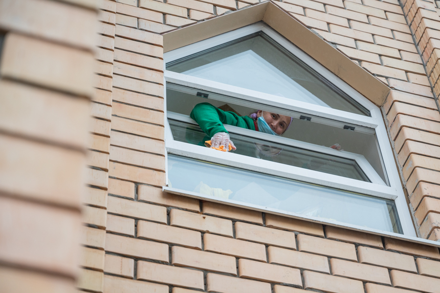 Далее волонтеры разделились на группы и приступили к работе. Работы хватило всем: девушки протирали пыль, мыли окна, двери, почистили ковры. Юноши навели порядок в новом строящемся объекте: почистили строительный мусор на первом этаже Исламского центра. Молодые люди вынесли остатки кирпичей на носилках, подготовили здание к чистовой отделке, перенесли необходимые для строительства материалы и инструменты. Из-за обильного дождя работы во дворе мечети пришлось отложить. Во время уборки все ребята использовали индивидуальные средства защиты: маски, перчатки и рабочую одежду.