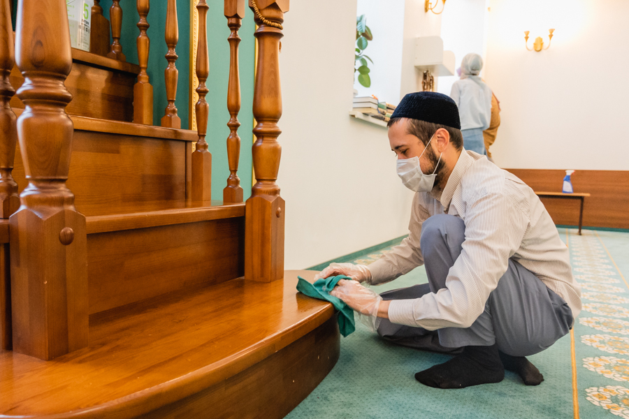 Сегодня, после длительного периода закрытия мечетей, в домах Аллаха вновь будут проведены джум’а-намазы. Перед этим долгожданным событием имамы и сотрудники мухтасибатов провели в мечетях уборку и дезинфекцию. К «субботникам» были привлечены и волонтеры движения MuslimVol.