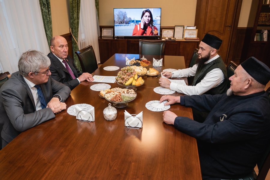 Духовное управление мусульман РТ посетили заместитель председателя Государственного Совета РТ, председатель Комиссии при Президенте РТ по вопросам сохранения и развития татарского языка Марат Ахметов и председатель комитета Государственного Совета РТ по образованию, культуре, науке и национальным вопросам Айрат Зарипов. Почетных гостей у себя принял глава мусульман Татарстана, муфтий Камиль хазрат Самигуллин. Вместе с ним во встрече принял участие и главный казый Татарстана Джалиль хазрат Фазлыев. Деловая встреча руководителей была посвящена вопросам реализации татароязычных проектов муфтията, и длилась более двух часов. Итогом рабочего совещания стали договоренности о поддержке ряда направлений деятельности ДУМ РТ в области сохранения родного языка и культуры.