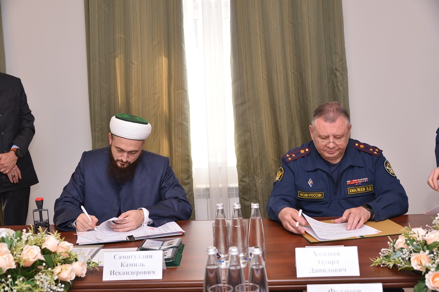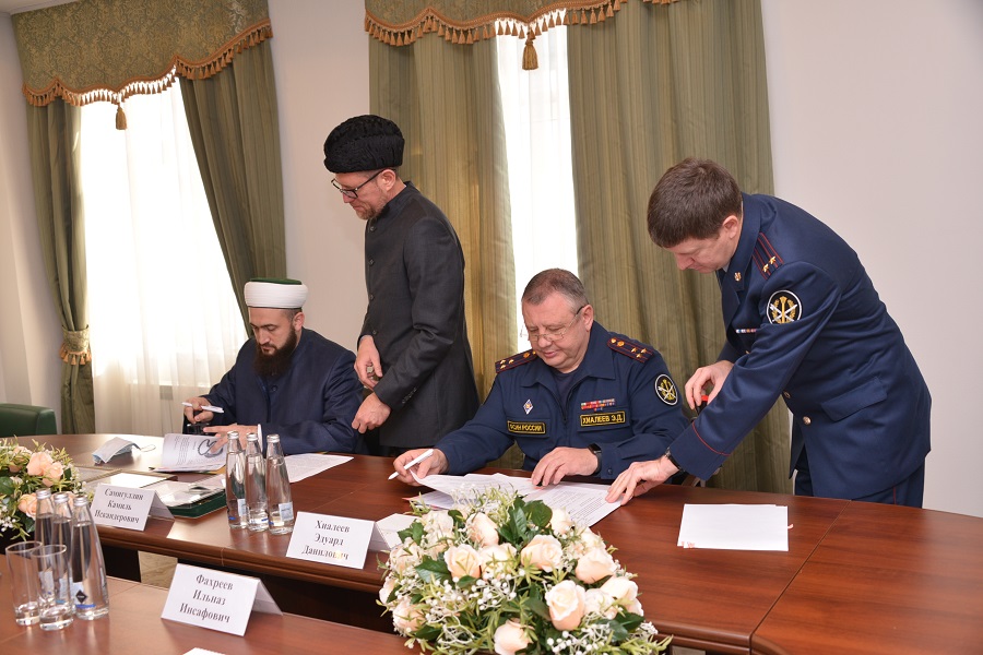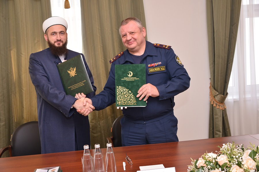Сегодня, в 12-й день месяца рабиуль-ауваль (29 октября), в резиденции Духовного управления мусульман РТ состоялось подписание соглашения о взаимодействии между УФСИН РТ и ЦРО – ДУМ РТ. Документ подписями скрепили начальник УФСИН России по Республике Татарстан Эдуард Хиалеев и муфтий Татарстана Камиль хазрат Самигуллин.