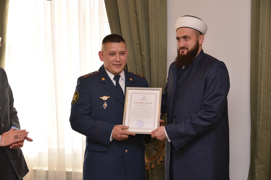 Кроме того, в знак благодарности за многолетнее плодотворное сотрудничество Камиль хазрат наградил медалью «Бердәмлек (Единство)» ДУМ РТ Эдуарда Даниловича, а также его помощника по работе с верующими Рафаиля Ганиевича Давлеева. Он также вручил Благодарственные письма специалистам УФСИН по РТ, принявшим весной активное участие в качестве волонтеров в благотворительной акции «Дорога жизни», проводимой Национальным исламским благотворительным фондом «Ярдэм», в период введения ограничительных мер из-за распространения коронавирусной инфекции. В рамках этой акции сотрудники УФСИН доставляли ланч-боксы с горячей едой людям с ограниченными возможностями.