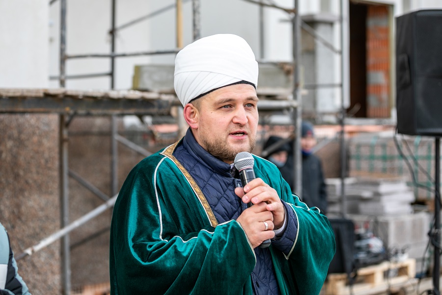 Ирек хазрат Зиганшин выразил слова благодарности всем, кто помогал в строительстве мечети и собравшимся на церемонию водружения полумесяца. В своем выступлении он отметил, что это благословенное мероприятие проходит в месяц Маулид, что по милости Аллаха, строительство мечети не прекращается даже в условиях пандемии, пожелал верующим, помогающим в строительстве, чтобы их благие дела возвращались им тысячакратно. Затем с помощью крана на мечеть был водружен полумесяц, совершена дуа.
