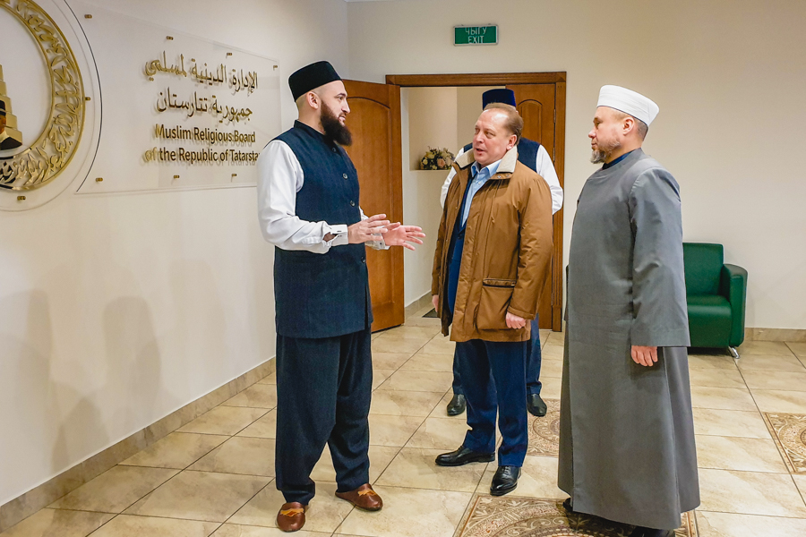 Сегодня, в 15-ый день месяца джумада аль ахир (28 января), в ДУМ РТ на встречу с муфтием Камилем хазратом Самигуллиным прибыл глава Нижнекамского муниципального района, мэр города Нижнекамска Айдар Метшин. Это не первая встреча руководителей, но в резиденции муфтията она состоялась впервые. В ней также принял участие советник муфтия по международным вопросам, имам-мухтасиб Нижнекамского района Салих хазрат Ибрагимов. В ходе беседы речь шла о многоплановой деятельности Духовного управления мусульман РТ, взаимодействии мухтасибата и местных властей, о состоянии и работе приходов нижнекамских мечетей и пр.