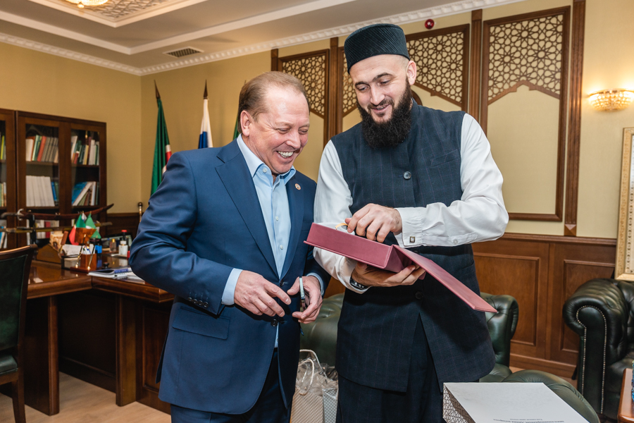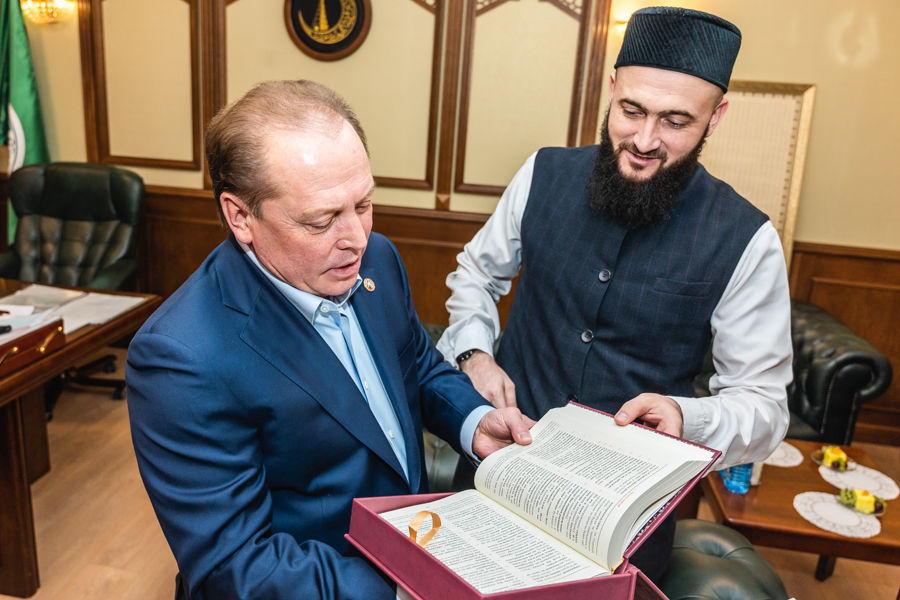 В завершение встречи Камиль хазрат подарил уважаемому гостю перевод смыслов Куръана «Калям Шариф. Перевод смыслов», изданный ИД «Хузур» ДУМ РТ.