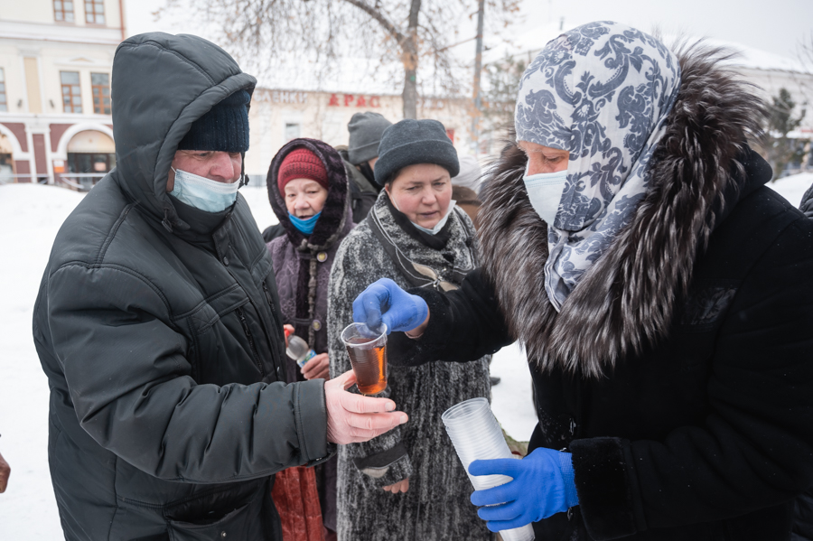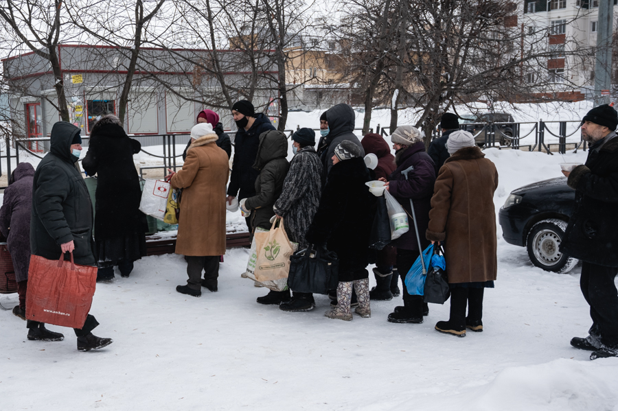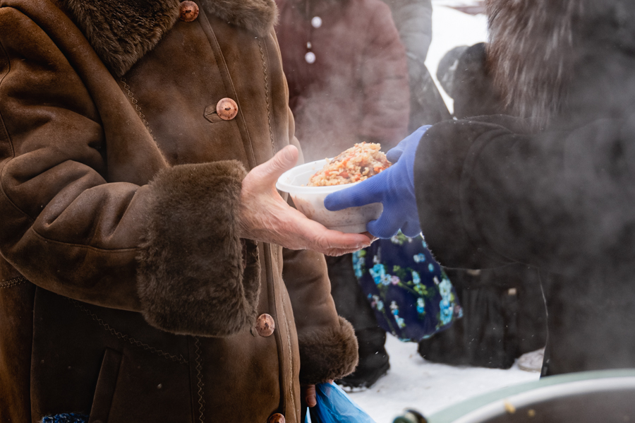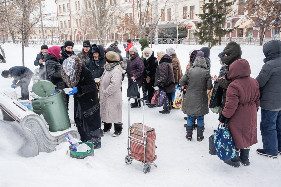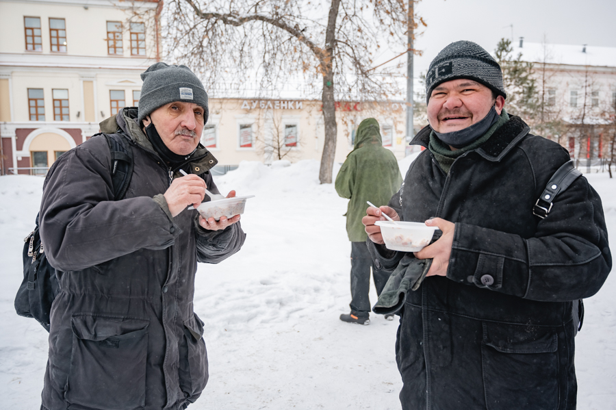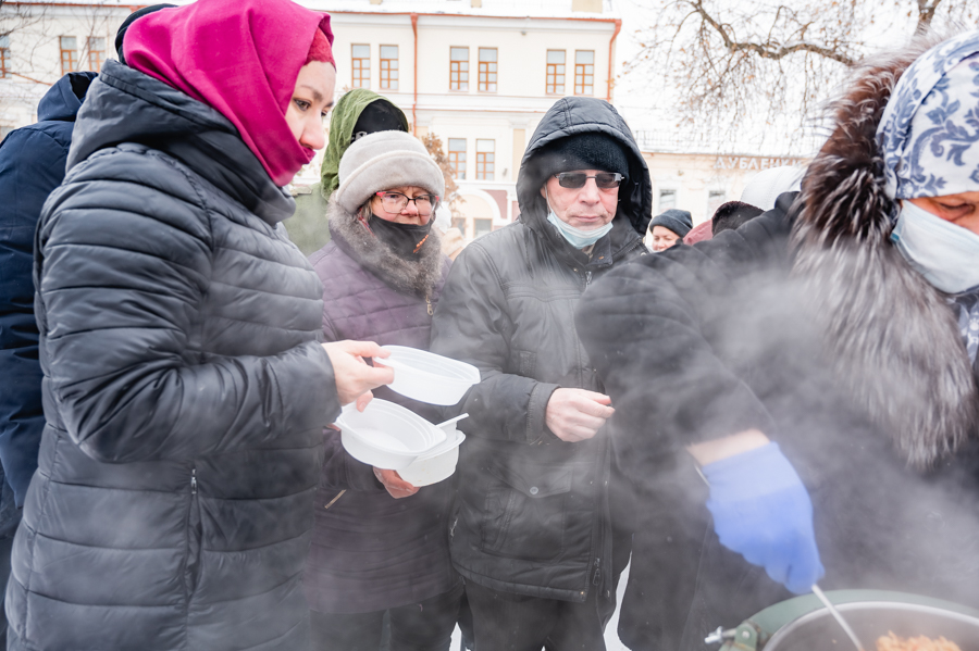 Благотворительный фонд «Закят» Духовного управления мусульман Татарстана продолжает благотворительные обеды под открытым небом для бездомных и нуждающихся. Сегодня бесплатные порции горячего питания раздавали в сквере на Бурхана Шахиди г. Казани с 10:00 часов. Нуждающихся угостили первыми и вторыми блюдами (мясной суп и плов), хлебом, чаем. Сотрудники фонда "Закят" в течение часа накормили более 50-ти человек. В дальнейшем обеспечение бездомных и нуждающихся горячим питанием будет проводиться каждую пятницу.