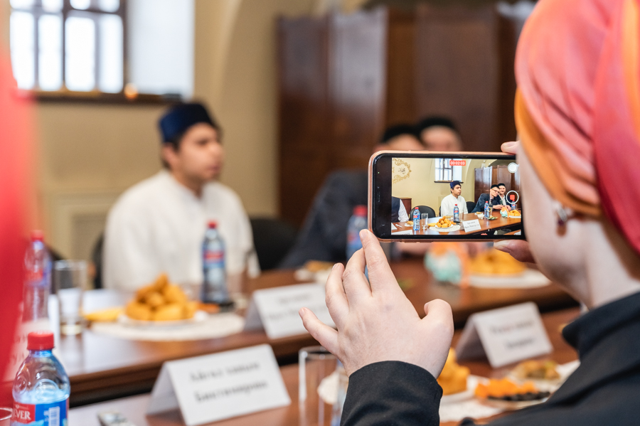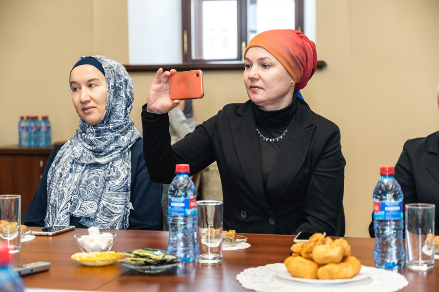 Гости встречи – среди них были и именитые журналисты из известных республиканских СМИ, и корреспонденты районных газет, ТВ и радио, не упустили возможности задать вопросы Камилю хазрату и узнать его мнение относительно разных явлений в обществе. Камиль хазрат, в свою очередь, ознакомил журналистов с новыми проектами ДУМ РТ, которые нацелены на рост уммы. А начальник отдела шариата ДУМ РТ Булат хазрат Мубараков подробно рассказал об издании сборника татарских имен, который учитывает и национальные традиции и религиозные устои.