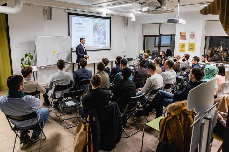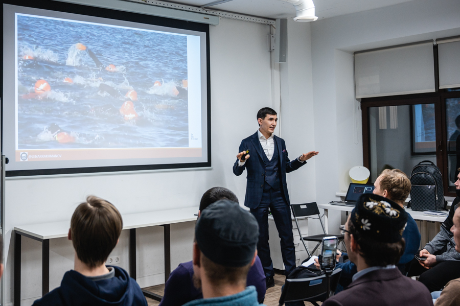 Вчера, в 26 день месяца Раджаб (10 марта) в Казани прошло очередное заседание публичного лектория ДУМ РТ. На встречу с мусульманской молодежью пришел основатель компании по управлению капиталом «Lenar Wealth Management», один из сильнейших финансовых и правовых советников России, кандидат в мастера спорта по триатлону, трехкратный Ironman Ленар Рахманов. В ходе беседы с мусульманской молодежью, прошедшей в коворкинге GrowUp, речь шла о марафоне, Ironman, тренировках и о том, как сделать частью своей жизни спорт и физкультуру.