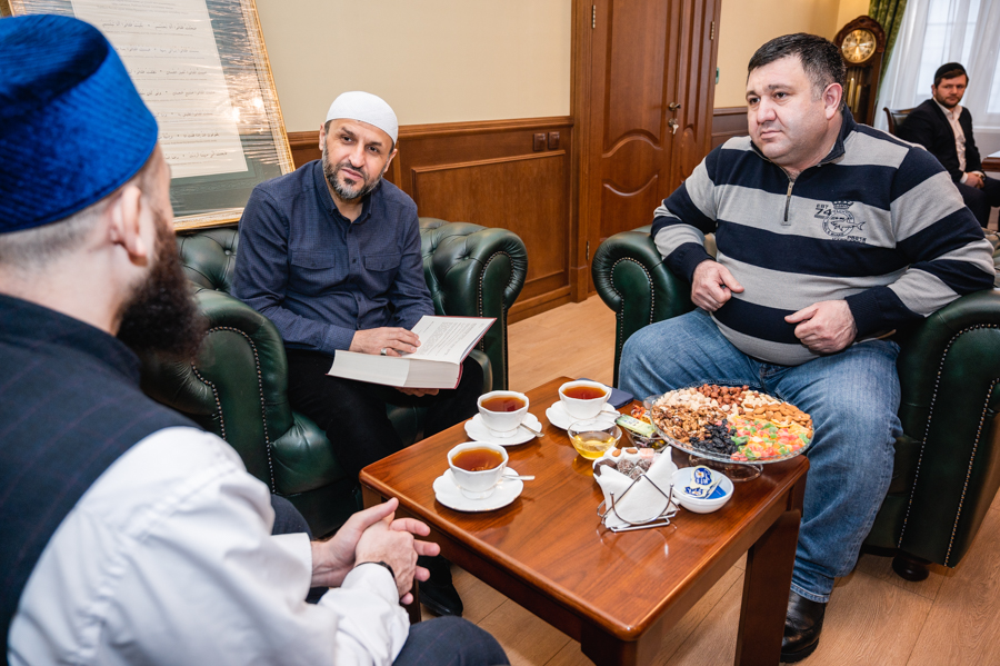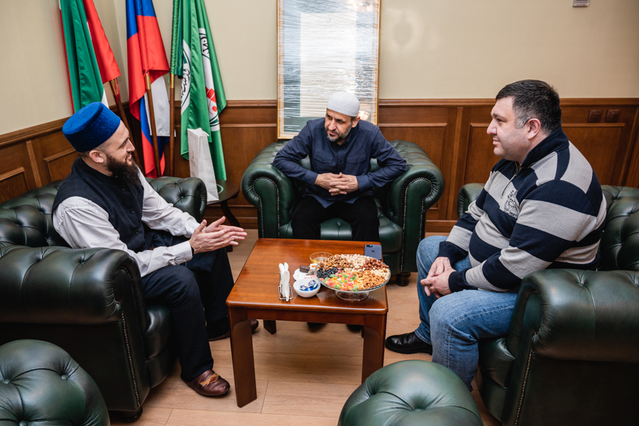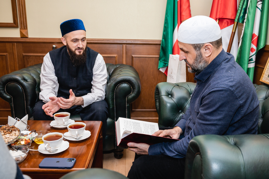 Религиовед Мухаммадрасул Саадуев сообщил, что приехал в Казань впервые и начал свой визит с ознакомления с деятельностью муфтията Татарстана. Камиль хазрат рассказал ему о многоплановой издательской, образовательной, социальной деятельности ДУМ РТ, ознакомил его с молодежной политикой муфтията.