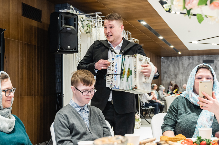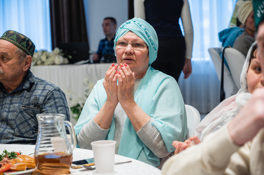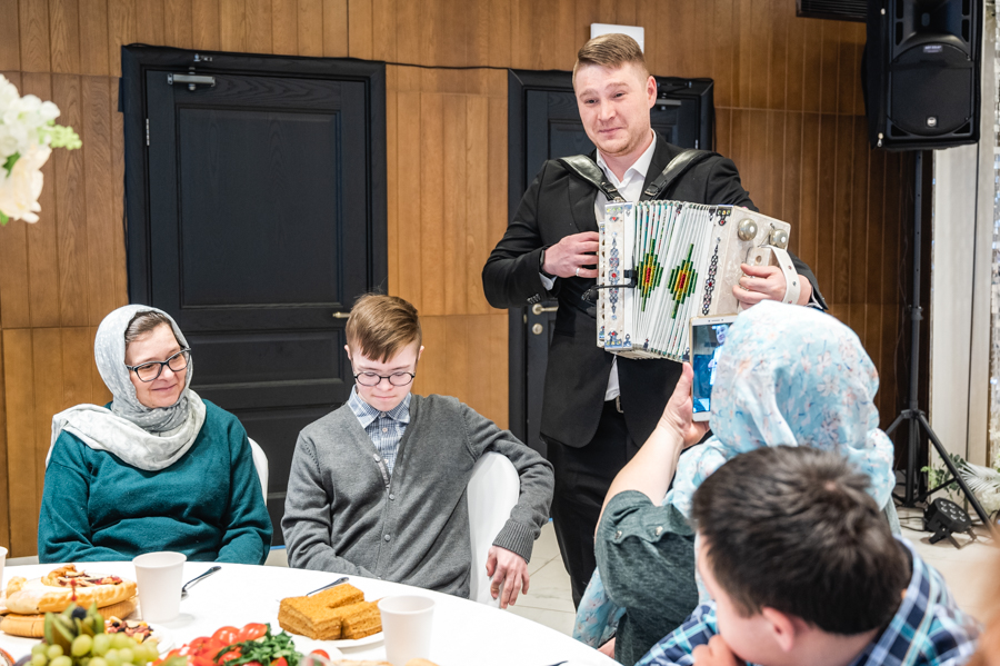 После вагаза в исполнении хазрата прозвучал красивый нашид «Камарун», а талантливый исполнитель и лауреат множественных премий Булат Хисматов порадовал гостей виртуозной игрой на гармони.