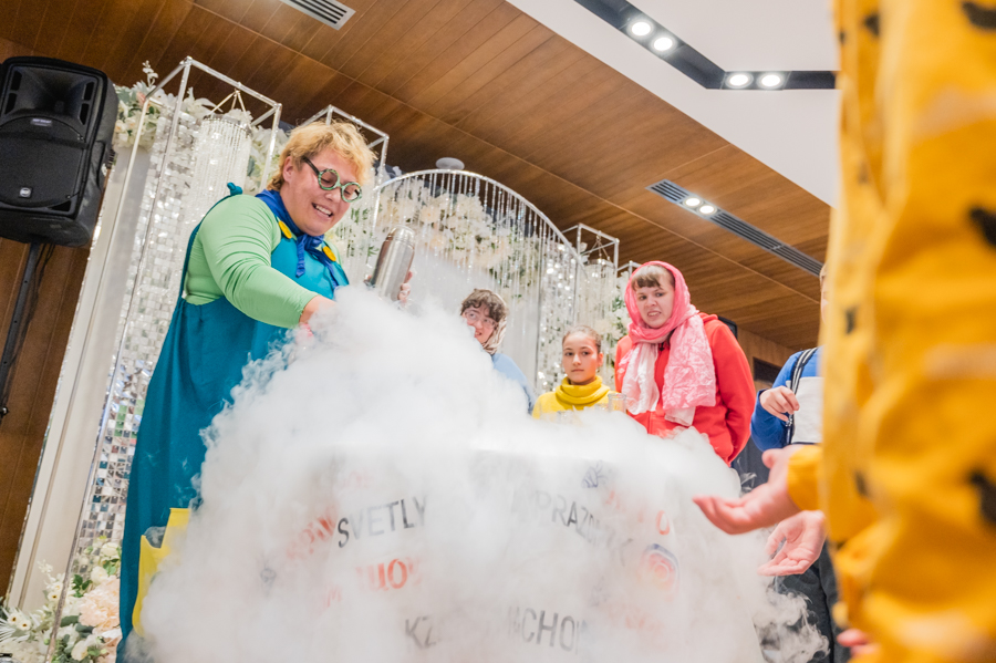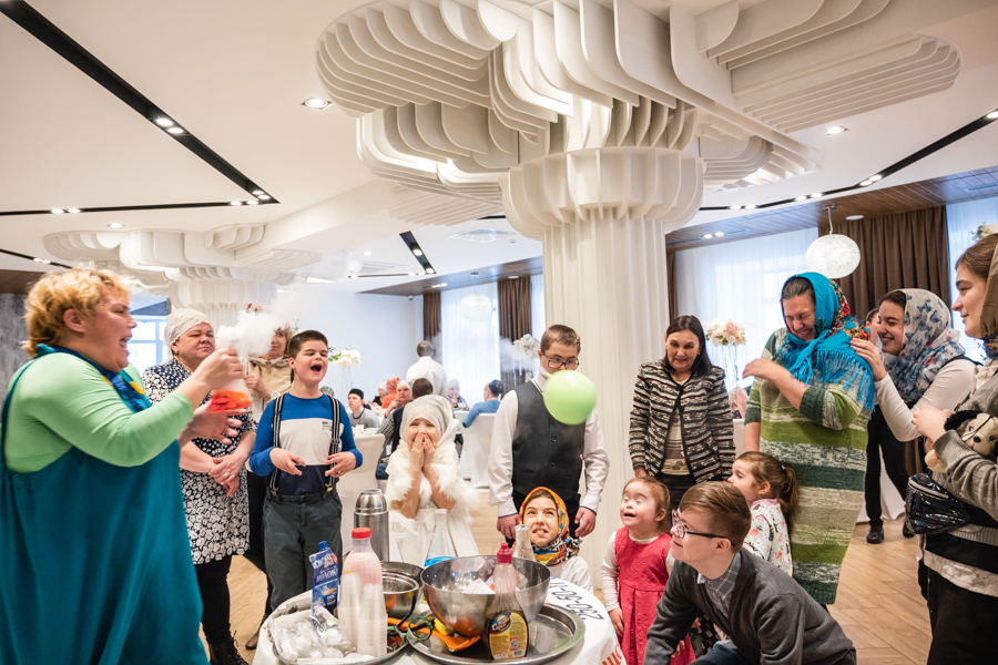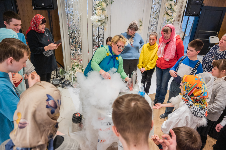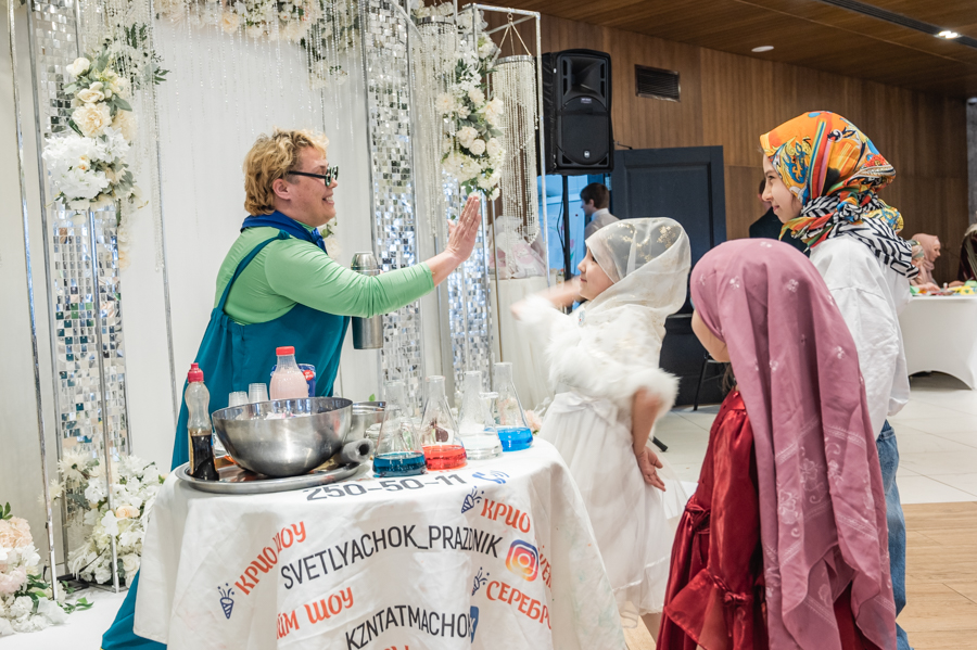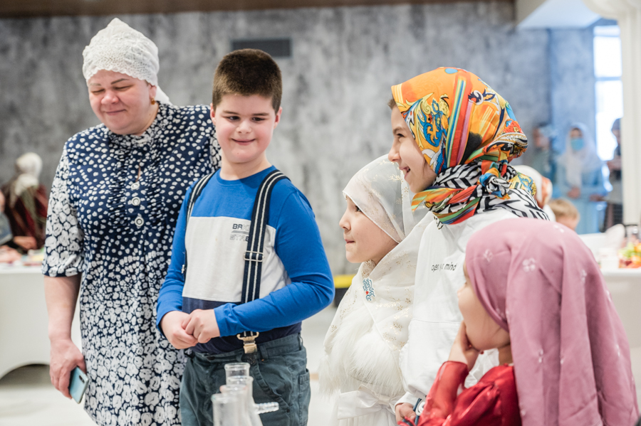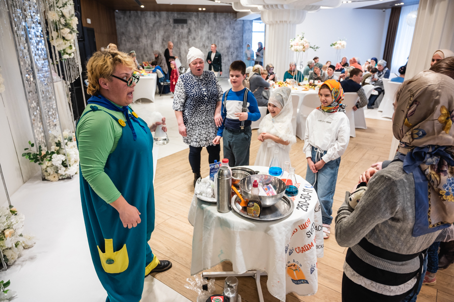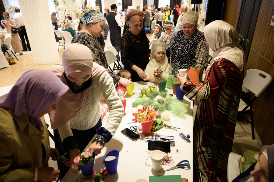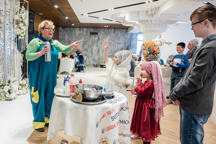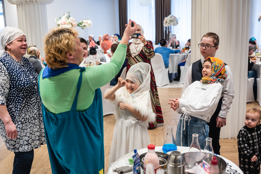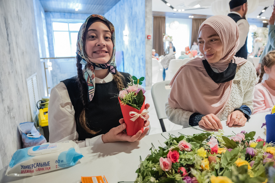 Далее для детишек провели интересные мастер-классы по интерьерной композиции, изготовлению головного убора с татарским орнаментом и «Крио шоу» от тёти Люли. В завершение мероприятия состоялся праздничный обед.