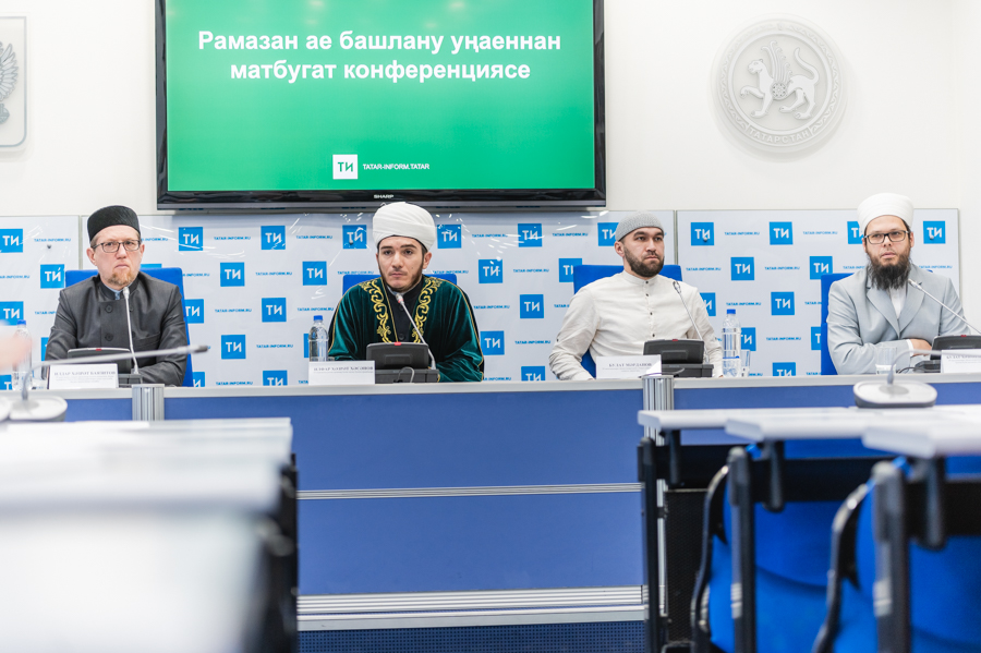 Сегодня в 24-й день месяца Ша'бан (6 апреля) в информационном агентстве «Татар-информ» состоялась пресс-конференция о проведении Священного месяца Рамадан в Республике Татарстан. Спикерами встречи с журналистами выступили заместитель муфтия РТ по взаимодействию с официальными органами Ильфар хазрат Хасанов, Советник муфтия РТ по социальным вопросам, имам-мухтасиб Кировского и Московского районов города Казани, имам-хатыб мечети "Ярдэм", Председатель совета НИБФ "Ярдэм" Илдар хазрат Баязитов, начальник отдела по вопросам шариата ДУМ РТ, казый г.Казани Булат хазрат Мубараков, генеральный директор Благотворительного фонда «Закят» ДУМ РТ Булат Марданов.