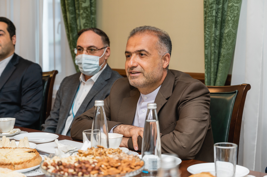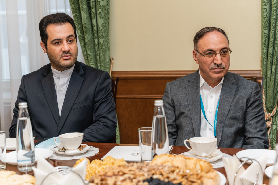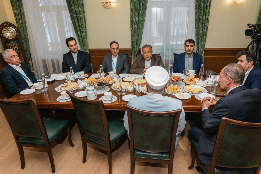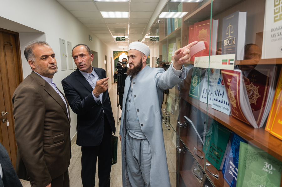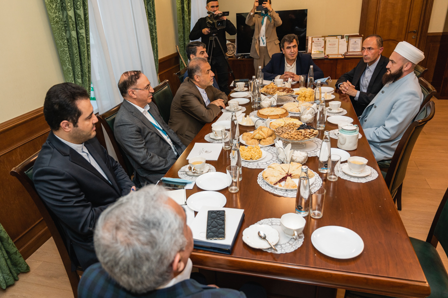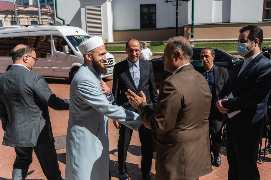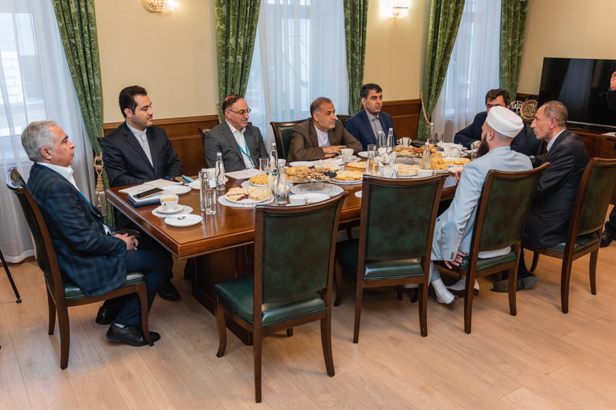 В первый день XII Международного экономического саммита «Россия — Исламский мир: KazanSummit», который открылся сегодня в Казани, резиденция ДУМ РТ принимает гостей делового форума. Здесь, в историческом комплексе Галеевской мечети, муфтий Татарстана Камиль хазрат Самигуллин проводит встречи с зарубежными делегатами, которые проявляют активную заинтересованность во взаимодействии с муфтиятом республики и к его деятельности. Одна из таких встреч прошла с чрезвычайным и полномочным послом Исламской Республики Иран в Российской Федерации Е.П. Каземом Джалали. Вместе с ним на официальную встречу с Камилем хазратом приехали советники посольства Бахрам ХЕЙДАРИ и Аббас ЗОЛФАГАРИ, вице-Консул генерального консульства ИР Иран в Казани Масуд МОЛЛАИ, гендиректор “Мир бизнес банк” Мохаммад Хаззар, директор Казанского филиала "Мир бизнес банка" Сейед Саид Вакили и др.