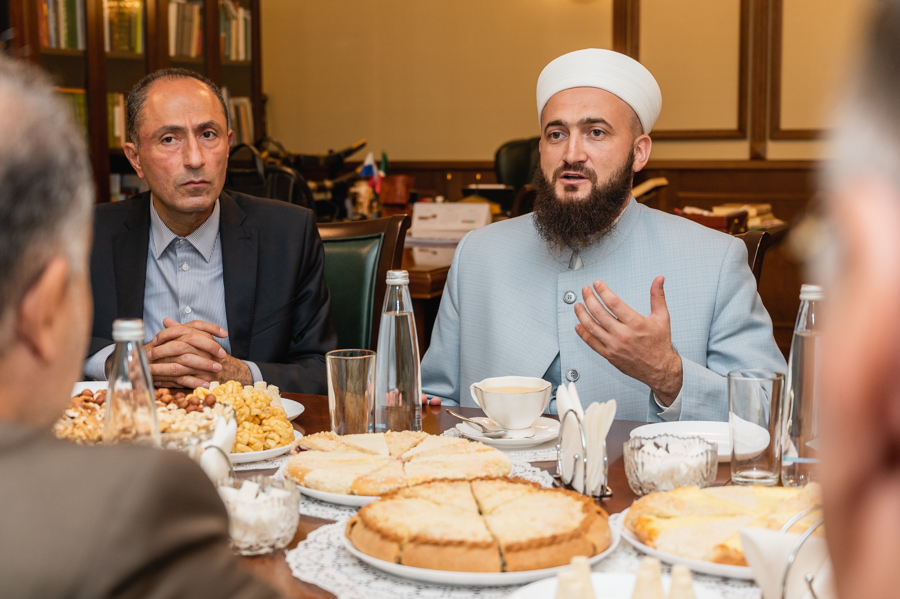 Камиль хазрат рассказал гостям об особенностях развития ислама в условиях мультикультурного российского общества, системе мусульманских религиозных структур в Татарстане и приоритетных направлениях деятельности ДУМ РТ: корановедении, просветительской работе, издательском деле, благотворительности, халяль-сертификации и пр., а также познакомил их с такими крупнейшими проектами ДУМ РТ, как перевод Куръана на русский и татарский языки, «Хузур ТВ», мобильных приложениях, онлайн-медресе. Кроме того, муфтий хазрат сделал для гостей короткий экскурс в историю и культуру татарского народа. Так, он отметил, что мусульмане России готовятся к встрече 1100-летия официального принятия Ислама в Волжской Булгарии, подчеркнул, что на территории Поволжья существуют многовековые традиции тасаввуфа и познакомил с выдающимися татарскими учеными-богословами.